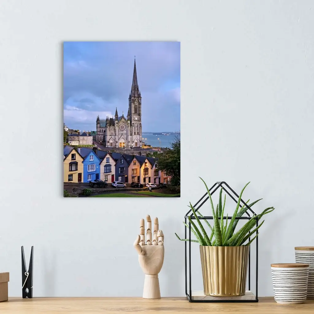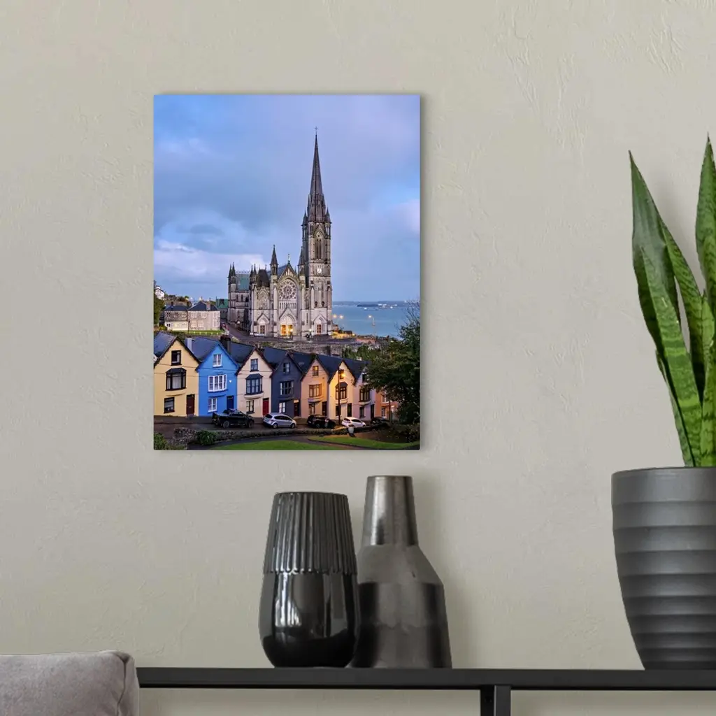 Deck Of Cards Colorful Houses And St. Colman's Cathedral At Dusk, Ireland