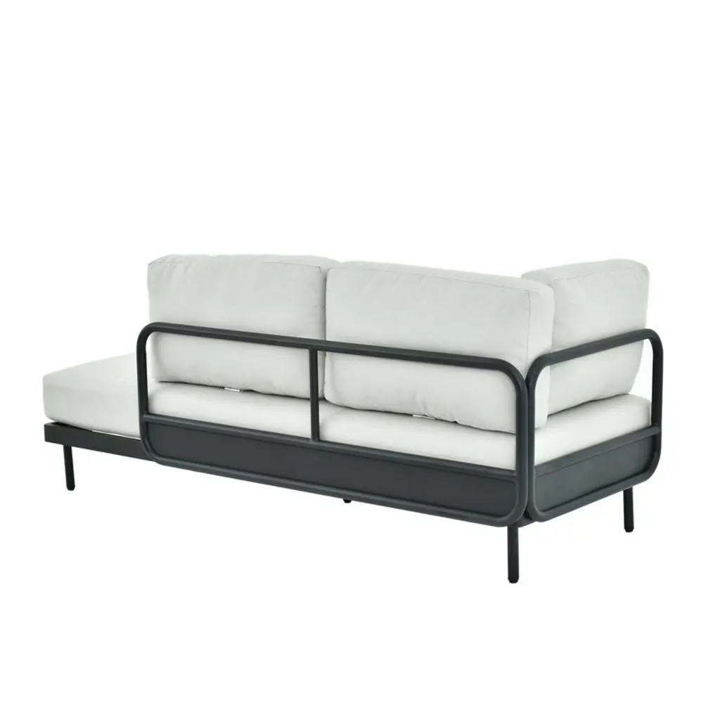 Imagine hosting a lively summer barbecue. As the sun shines down, your guests arrive and are immediately drawn to the modern allure of this sectional sofa. Its sleek ALU. FRAME, with a lustrous powder-coated finish, catches the light, setting a contemporary tone for the gathering. You can effortlessly move the pieces around to create the perfect seating arrangement, whether it's a cozy conversation nook for a few friends or a sprawling lounge area for a larger crowd. The lightweight design means you can do this single-handedly, without breaking a sweat, ensuring that every guest feels welcome and comfortable. What's Included? 2 Cushion(s) 1 Table(s) 1 Sectional(s) 1 Sofa(s)