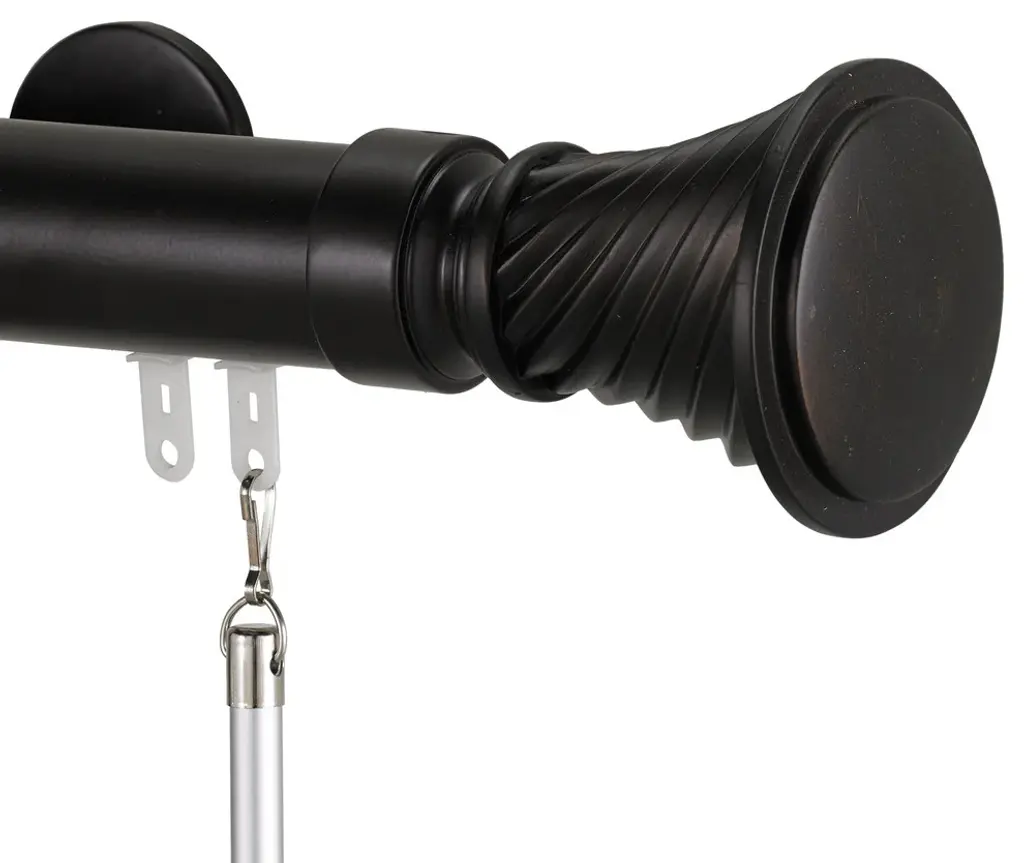 Art Decor has developed the most functional decorative traverse rod in North America. An innovative support system enables your drapes to traverse without bracket interference. Deco-Trav 2 is the first decorative traverse rod, allowing a one way draw, for patio doors. Deco-Trav is best suited for pinch pleat drapes or Wave drapes utilizing standard pin on hooks. Deco-Trav 2 is 1 1/2 inches in diameter for a descriptive presence.•Deco-Trav 2 includes, an aluminum rail, supports with a 2" projection, two finials, carriers and one baton.•All rails are powder coated with Perma Glide for the best traversing in the industry.•Wall supports project 2 1/8 inches from wall to rail.•Batons are made of aluminum and color co-ordinate with rod.•Rods longer than 96 inches come in two equal pieces with a simple, effective splicing system to save on transport costs.•Finials are made of resin and are hand painted with detailed highlights.