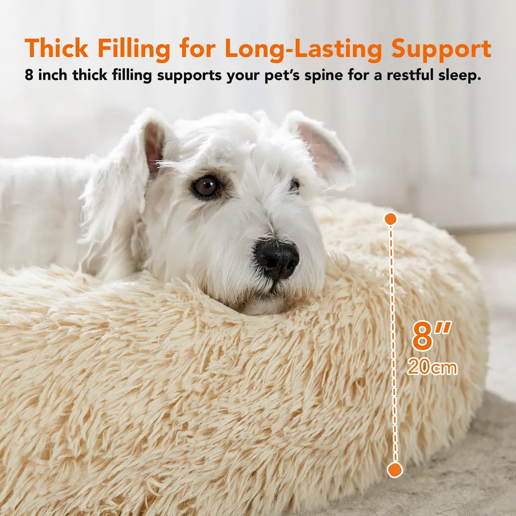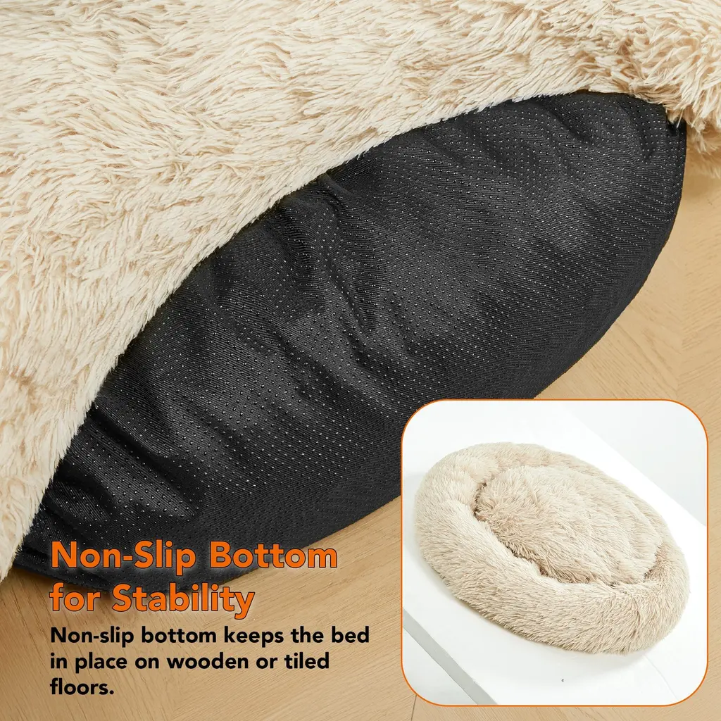 Deconovo Calming Donut Pet Bed Oeko-Tex Plush Washable - 21lx21wx8h - Cream