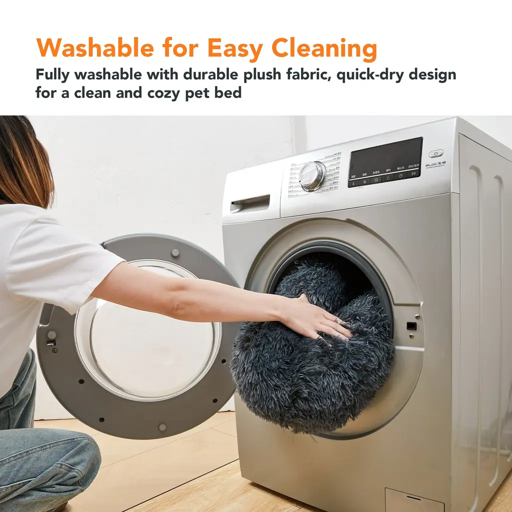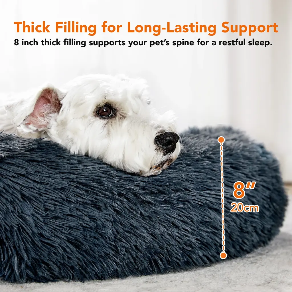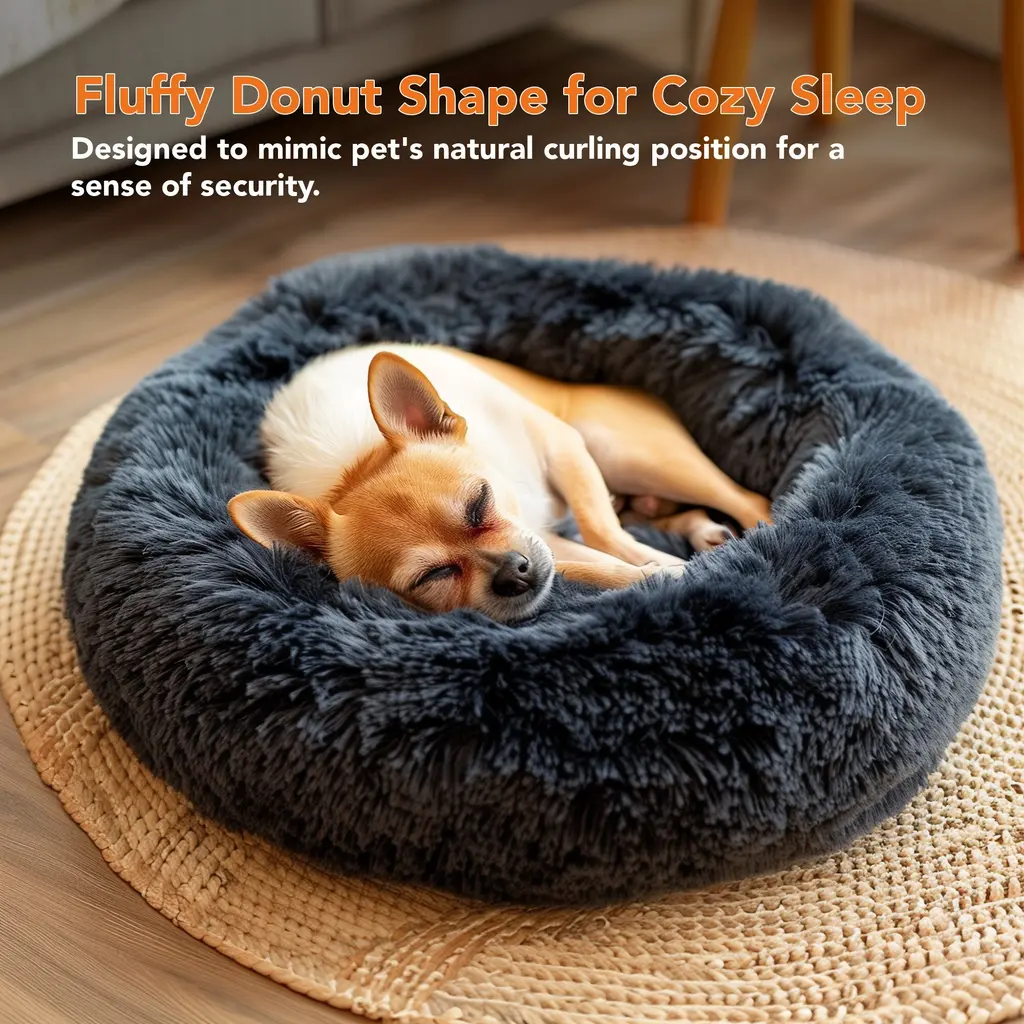 Give your pet the cozy comfort they deserve.Crafted with ultra-soft 1.5 Inch plush fabric and generously filled for 8-inch thick orthopedic support, this donut-shaped Deconovo pet bed creates a calming retreat that your furry friend will love.Perfect for pets who love to curl up, this bed helps relieve joint pressure while surrounding them in warmth and softness. Whether it's nap time or bedtime, this bed provides a comforting haven.What You’ll LoveCertified Safe: OEKO-TEX STANDARD 100 certified—ensuring your pet rests on non-toxic, eco-conscious materials.Supports Deep Sleep: Donut shape cradles your pet in a hug-like comfort for better rest.Stays in Place: A non-slip bottom keeps it secure on tile, hardwood, or carpet.Hassle-Free Cleaning: Toss the entire bed into the washing machine for easy upkeep.Sized to Fit: Available in five sizes to accommodate pets up to 75 lbs, from small cats to medium and large dogs.Color Options: Stylish neutrals that complement any room—Pink, Cream, Dark Grey, Light Khaki, and Light Grey.Size GuideStyle and sustainability, right at home. This is more than a pet bed—it's Deconovo comfort with a conscienceCare Instructions: