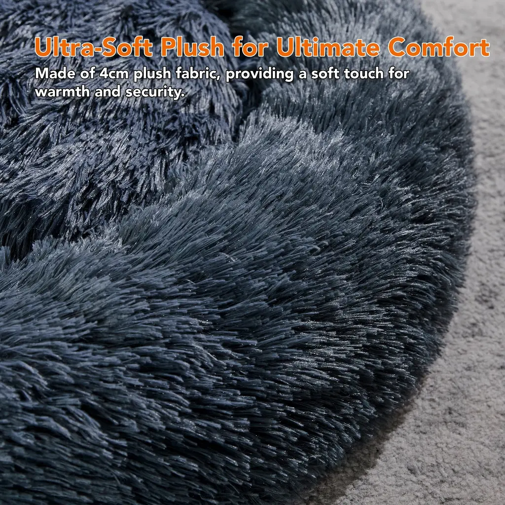 Deconovo Calming Donut Pet Bed Oeko-Tex Plush Washable - 21lx21wx8h - Dark Grey