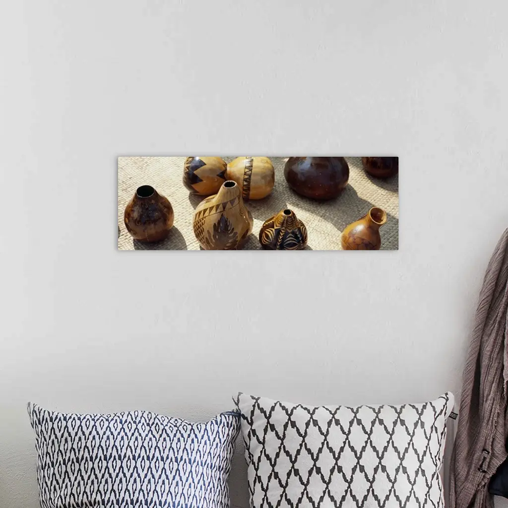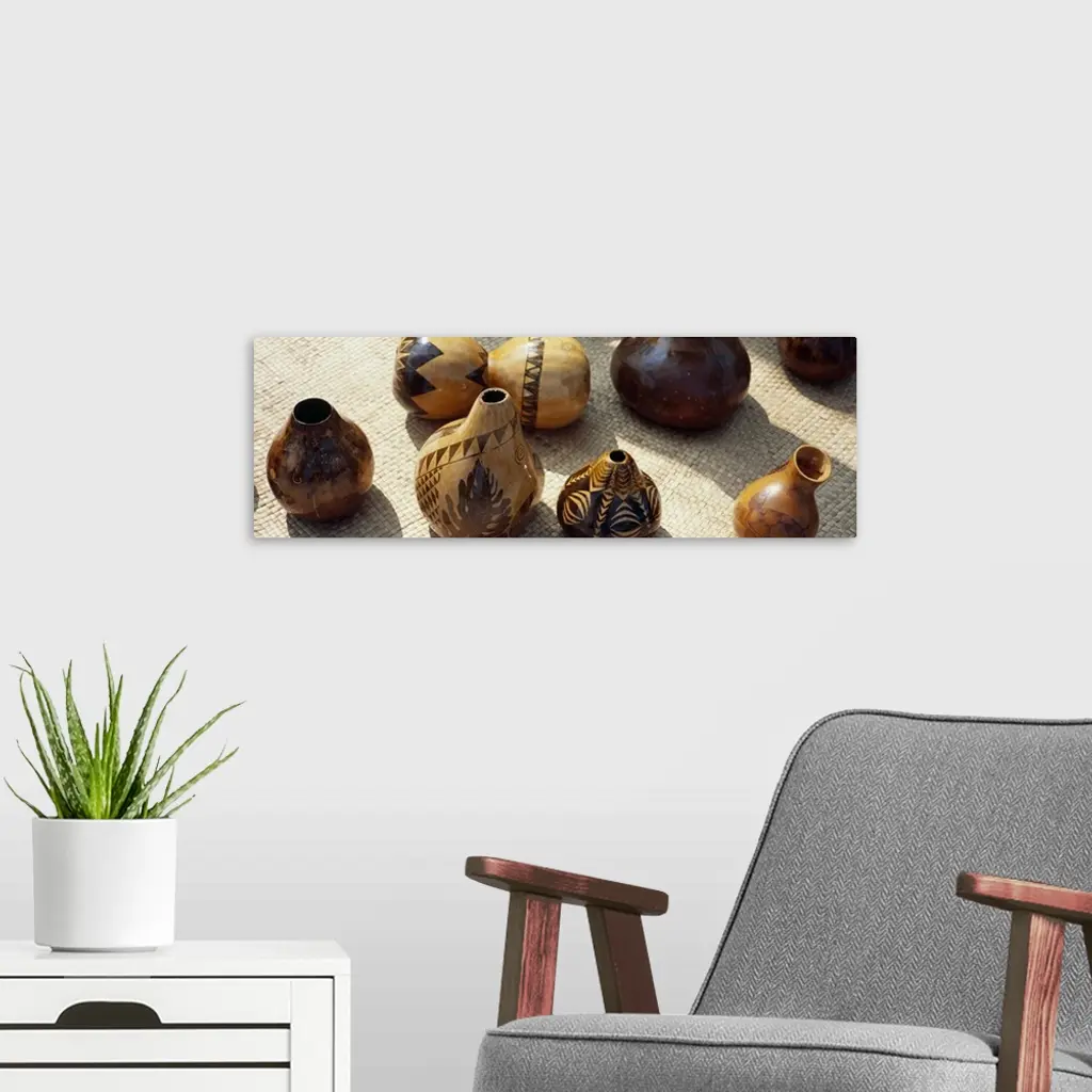 Decorated gourds named Ipu used as Hula rhythm instruments on a mat, Puuhonua o Honaunau National Historical Park, Honaunau, Hawaii, wall art for home and office decor. Discover canvas art prints, photos, mural, big canvas art and framed wall art in GreatBigCanvas.com's varied collections.