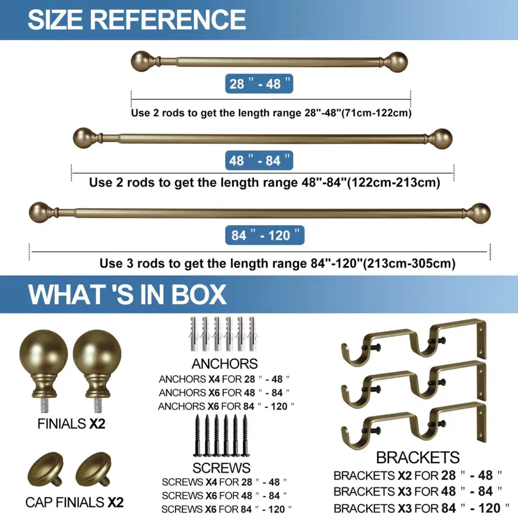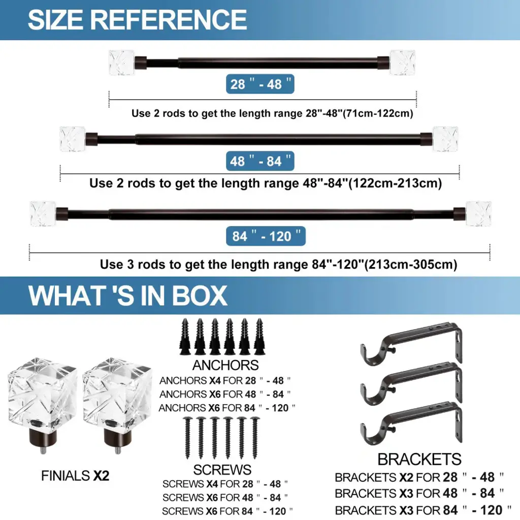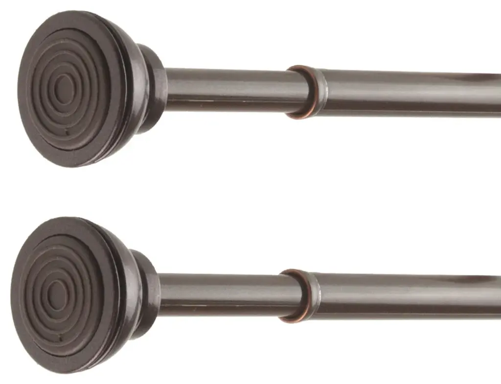 Elevate your window treatment with our new decorative spring curtain rod. This curtain rod will instantly add a modern and sophisticated style to your spaceRod extends 24-36 inchesComes in a set of 2Material: Metal rod and plastic endsWeight Capacity: 5lbsEnd diameter: 1.25 inch