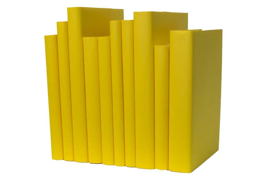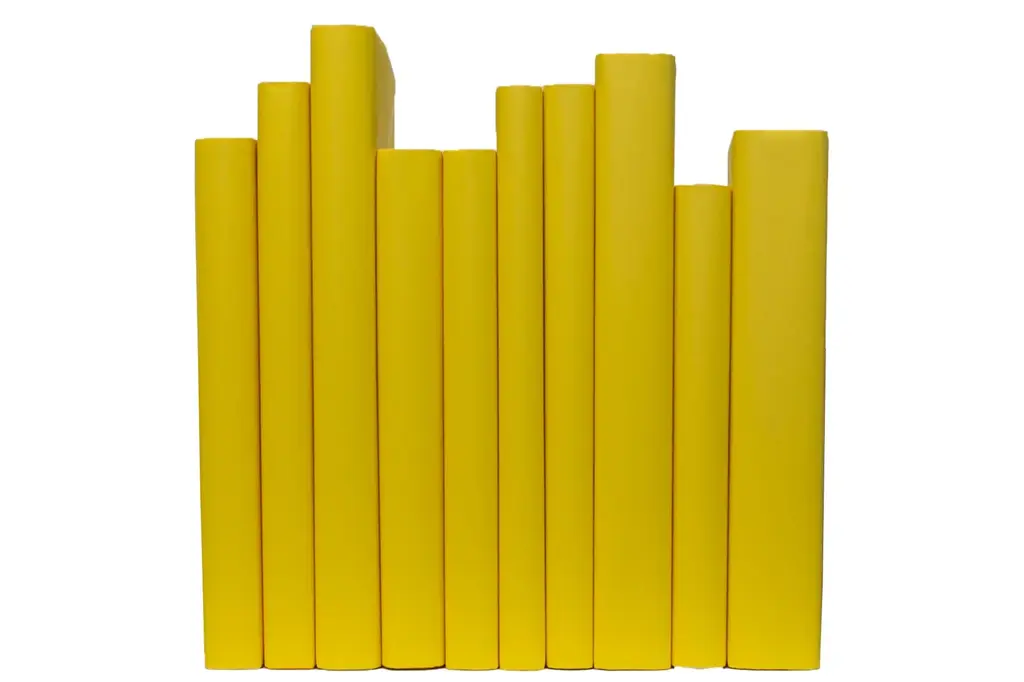 Take your design to a new level with the Saffron Paper Wrapped Oversized ColorPak from Booth & Williams. Authentic modern hardback books wrapped in a shade of warm yellow 80T paper. Each linear foot of books contains 10-12 books with an average height of 10-15”. Order as many linear feet of our decorative book collection as you need to complete your project.