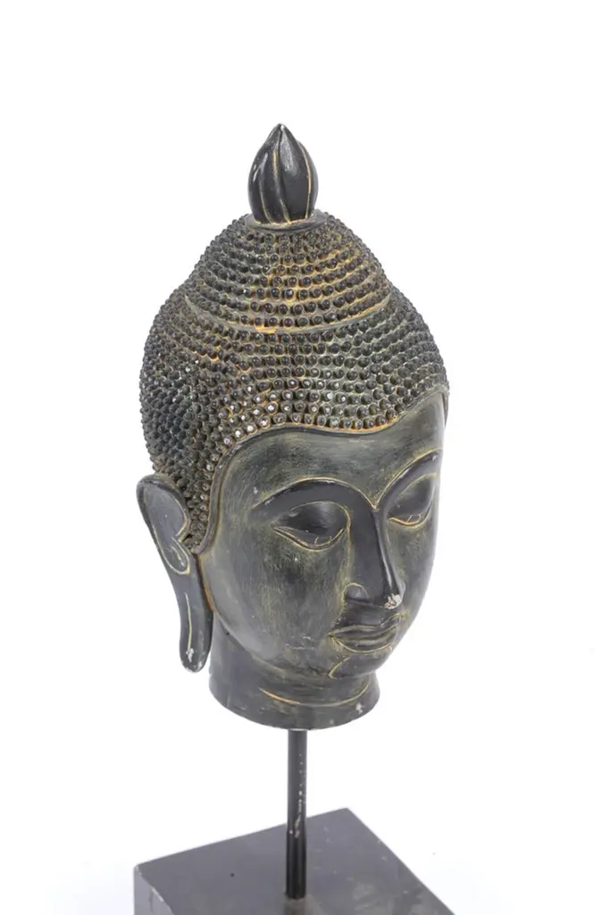 Decorative Buddha Head Stand Antique Resin Buddha Head On Stand 1960