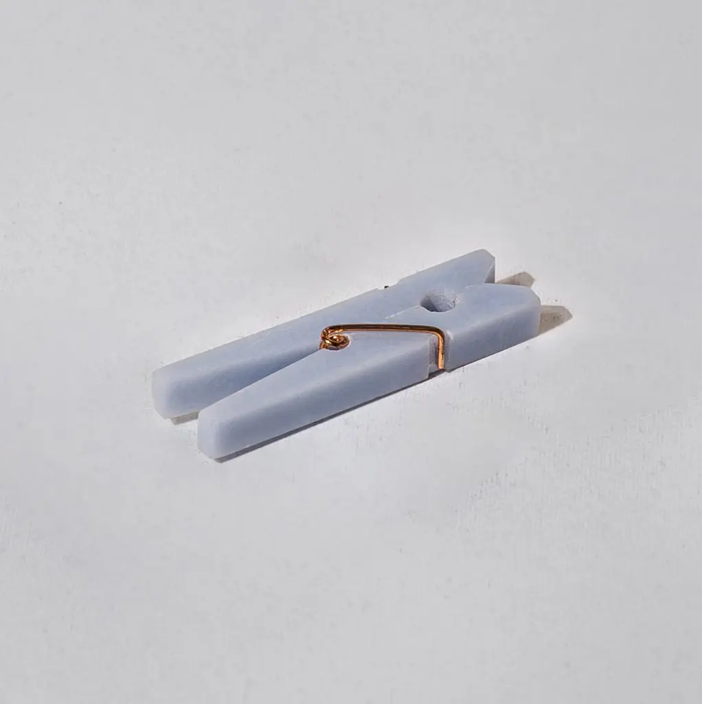 Beautify your home with our blue celestine clip, an eco-friendly and sustainable decoration choice.D.A.R. Proyectos carves the uniquely Peruvian Angelite stone into our classic laundry peg.This familiar object is a favourite for desktops, capturing love notes, or for your most luxurious piece of laundry. A luxurious and whimsical gift, as no two clips are alike! Laundry Clip. Delightfully included in best of lists on the New York Times, New York Post and Sight Unseen.Dimension: 2.75 x 0.75 x 0.375 inWeight: 0.1 LbMaterial: CelestineAbout this stone:With provenance from the Arequipa Andes of Perú, the soothing Angelite Celestine stone is made of calcium sulfate. The metaphysical properties of the stone are said to improve calcium absorption through the blood, which allows the body to vibrate on clear communication and intuition. These qualities are then able to open the third eye and crown chakras for higher vibrations.