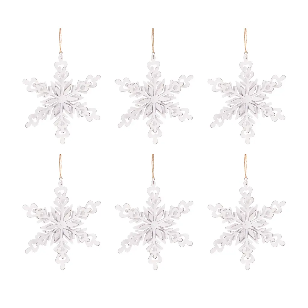 Product FeaturesCreate your perfect winter wonderland with an iron snowflake ornament.This hanging ornament is made from strong iron and is in the shape of a unique snowflake.This decoration piece is perfect as a gift or stocking stuffer this holiday season.The Features: Weathered finishProduct Details: 80% Iron,20% RopeMeasurement:6.3x1.77x6.69(Inches)/eachWeight:0.1lbs/eachDescriptionThe DesignCreate your perfect winter wonderland with an iron snowflake ornament. This hanging ornament is made from strong iron and is in the shape of a unique snowflake. This decoration piece is perfect as a gift or stocking stuffer this holiday season.