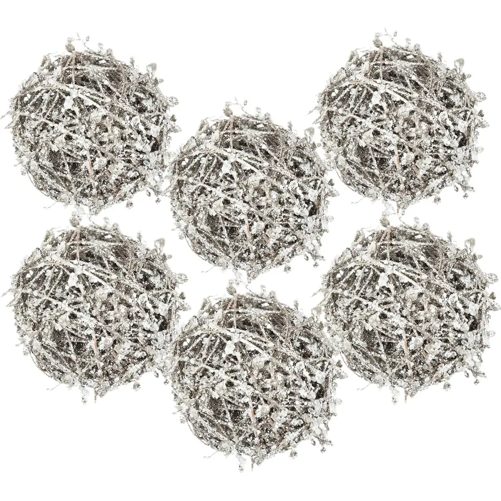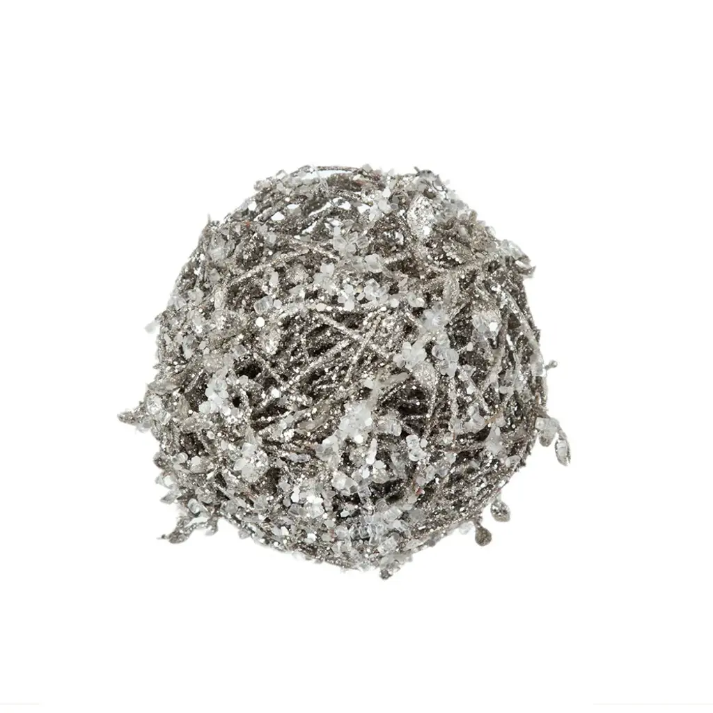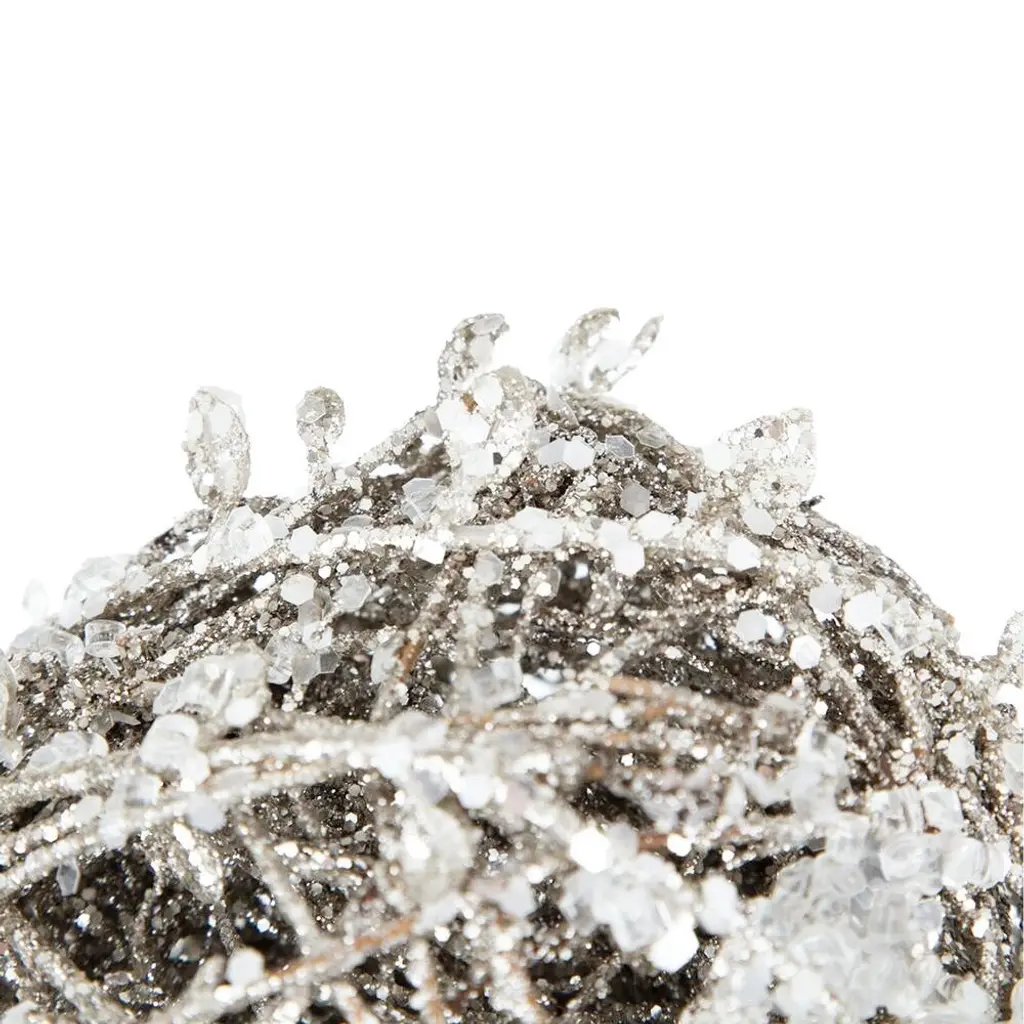 Product FeaturesTake a more natural-looking approach to decorating your Christmas tree with an iced leaf and twig ball.This hanging ornament boasts a rich silver color, making for a great contrast.This ornament also makes for a great gift or stocking stuffer.The Features: Glittered accentsProduct Details: 50% Plastic,30% Wire,20% AngelvineSpecificationMeasurement:4.5x4.5x4.5(Inches)Weight:0.3lbs/eachDescriptionThe DesignTake a more natural-looking approach to decorating your Christmas tree with an iced leaf and twig ball. This hanging ornament boasts a rich silver color, making for a great contrast. This ornament also makes for a great gift or stocking stuffer.