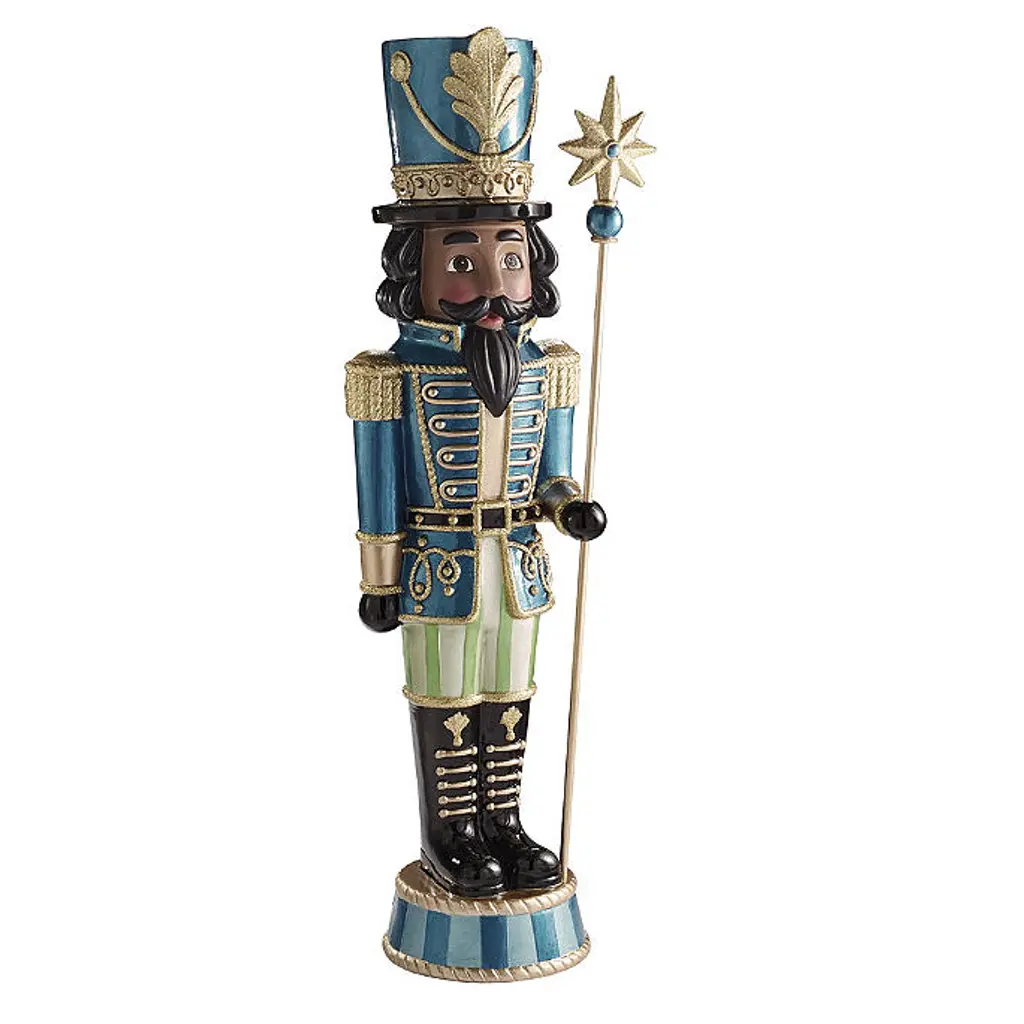 This regal resin nutcracker figure holds a golden staff or snow globe as he stands on a circular base. Painted by hand, it brings holiday elegance and fun to mantels, tabletops and more. Resin Cast from a hand-sculpted original Handpainted For indoor use For display; not a toy Wipe clean with a soft, dry cloth Colors and design may vary slightly due to the handmade nature of this product; no two are identical A Frontgate exclusive. At Frontgate, our primary focus is quality. We guarantee that every product we sell will stand up to the supreme test – our customers' satisfaction. To learn more about our policies, visit our Shipping & Processing, Returns & Exchanges and Warranty & Price Guarantee pages. This regal resin nutcracker figure holds a golden staff or snow globe as he stands on a circular base. Painted by hand, it brings holiday elegance and fun to mantels, tabletops and more. Resin Cast from a hand-sculpted original Handpainted For indoor use For display; not a toy Wipe clean with a soft, dry cloth Colors and design may vary slightly due to the handmade nature of this product; no two are identical A Frontgate exclusive. At Frontgate, our primary focus is quality. We guarantee that every product we sell will stand up to the supreme test – our customers' satisfaction. To learn more about our policies, visit our Shipping & Processing, Returns & Exchanges and Warranty & Price Guarantee pages.