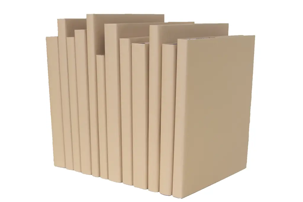 Take your design to a new level with the Sandstone Paper Wrapped Oversized ColorPak from Booth & Williams. Authentic modern hardback books wrapped in a warm shade of tan 80T paper. Each linear foot of books contains 10-12 books with an average height of 10-15”. Order as many linear feet of our decorative book collection as you need to complete your project.