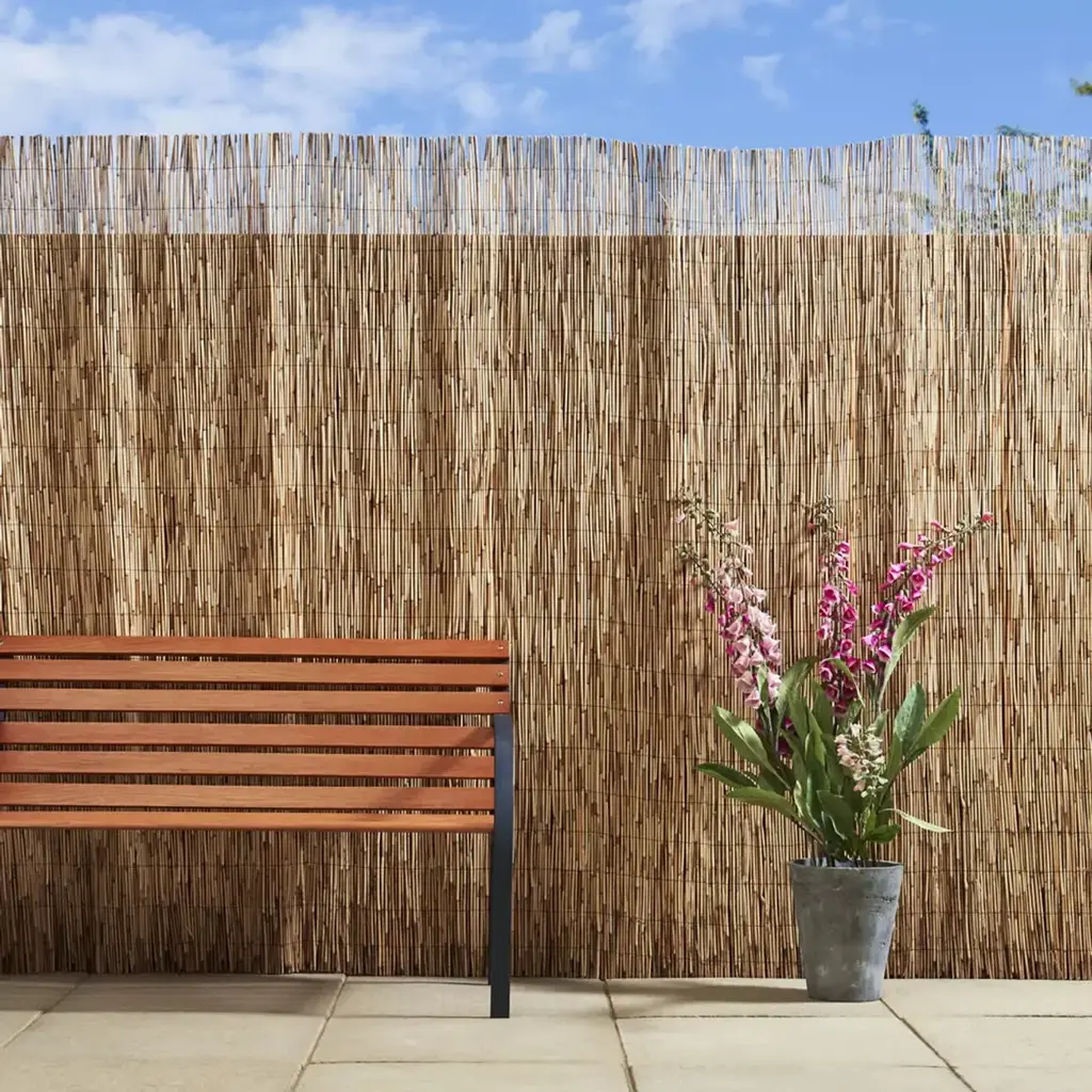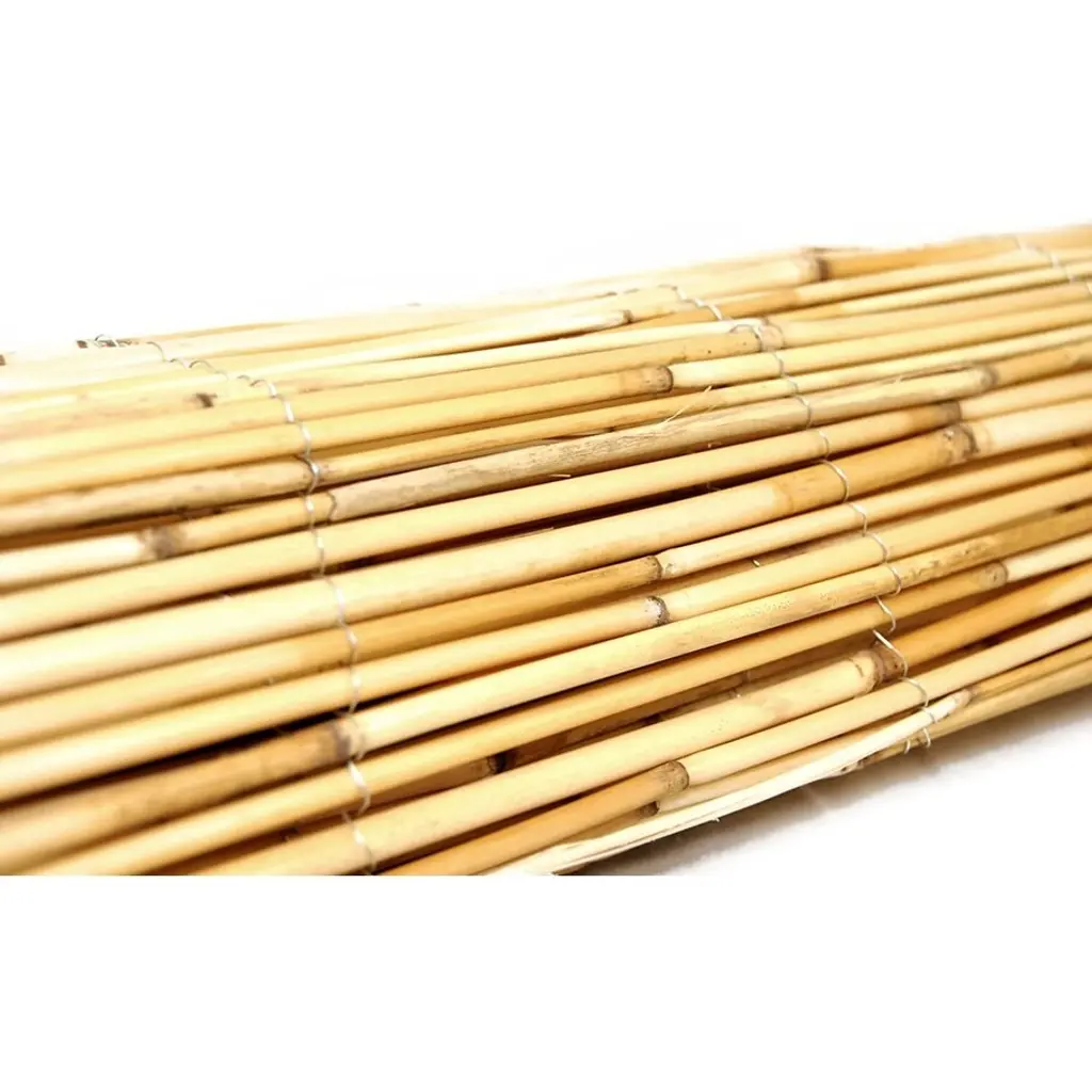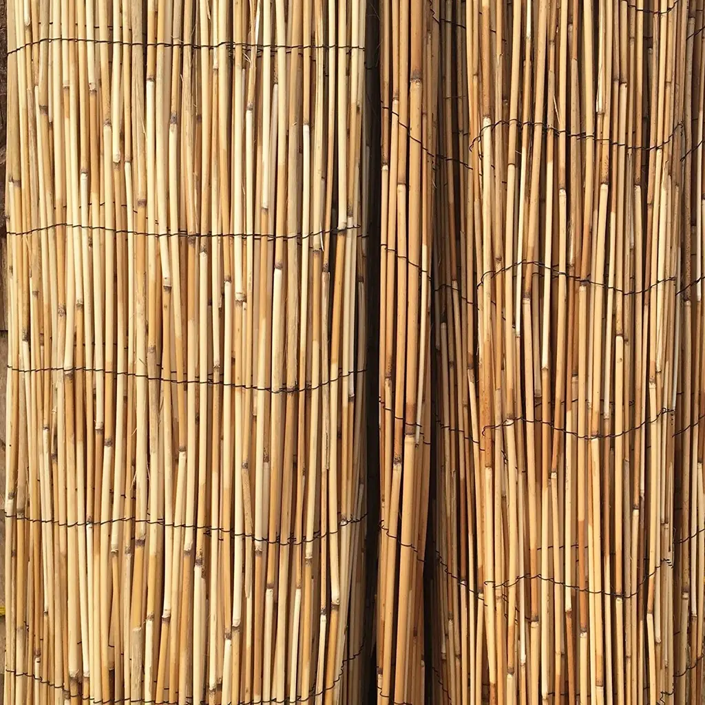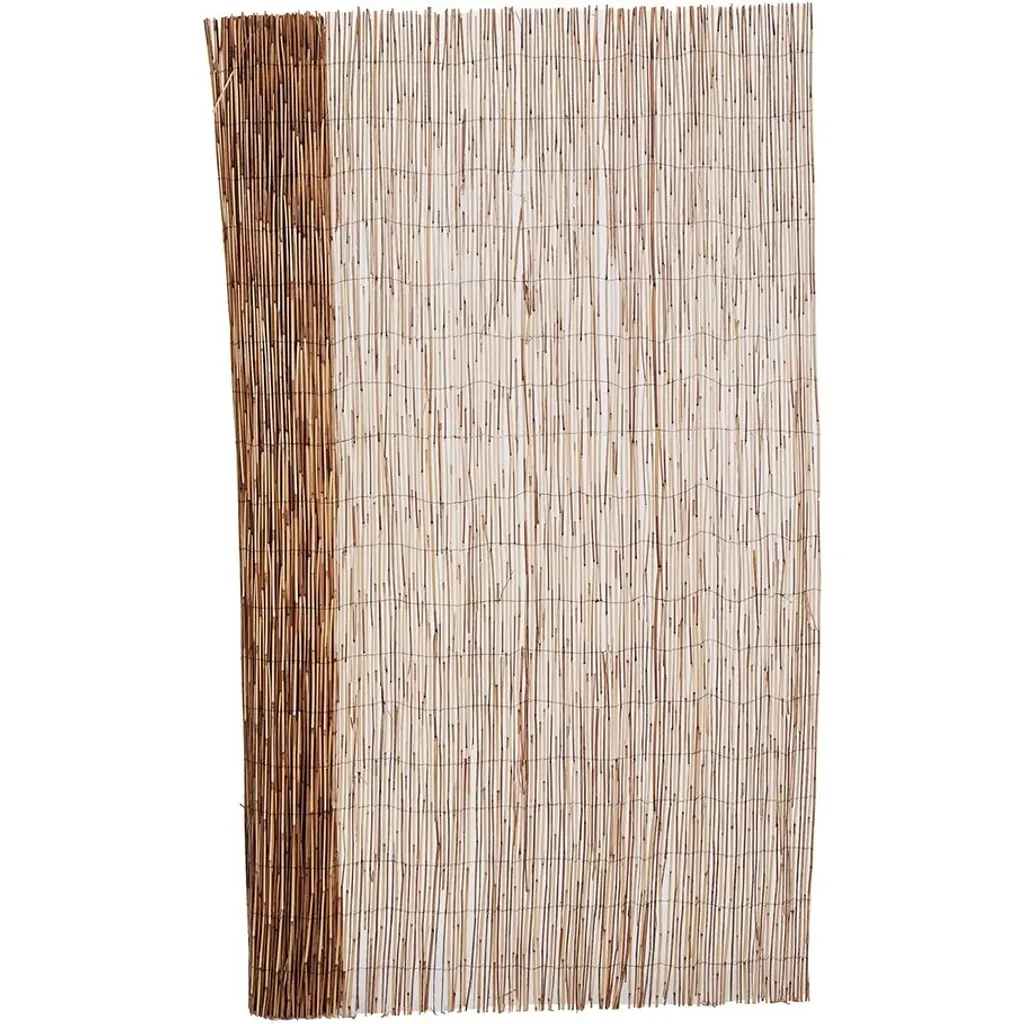 Reed fencing is a budget-friendly, temporary material that can be used for all sorts of DIY projects and applications. Backyard X-Scapes sustainable and eco-friendly Reed Fencing is constructed from freshwater reed that grows abundantly along river banks, wetlands, and estuaries. The pre-assembled panels are carefully woven together by vinyl coated wire to ensure durability while remaining seamless. Unlike bamboo fences, the individual reed diameters vary between 1/8 in. x 1/4 in., which makes this reed fencing lightweight and easy to handle. Perfect to use as a decorative fence, divider, to cover unattractive old fencing, or to hide your unsightly areas. Excellent for indoors or outdoors, use it as trade show backdrops, convention events, kids rooms, Hawaiian parties, and most any tropical themed oriented design. To cover the gaps between the reed fence panel and add more privacy, please use multiple layers of Reed rolled fence panel until attaining your desired look. Reed fence is not recommended as privacy fence.Features: