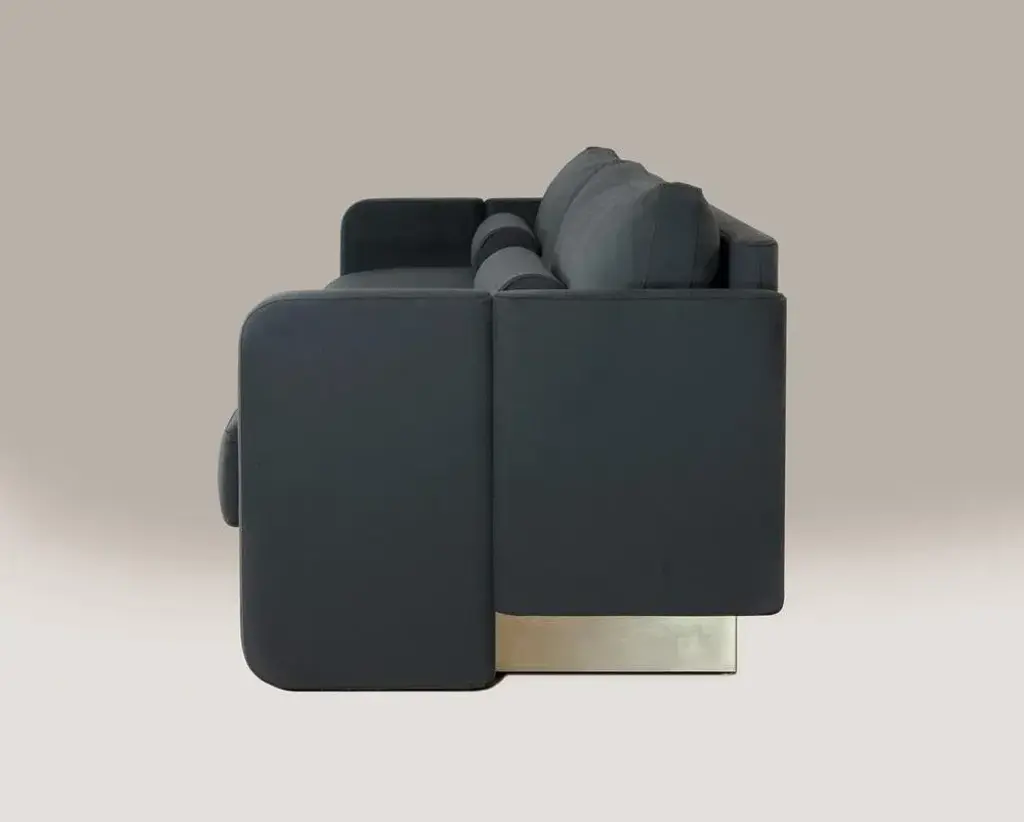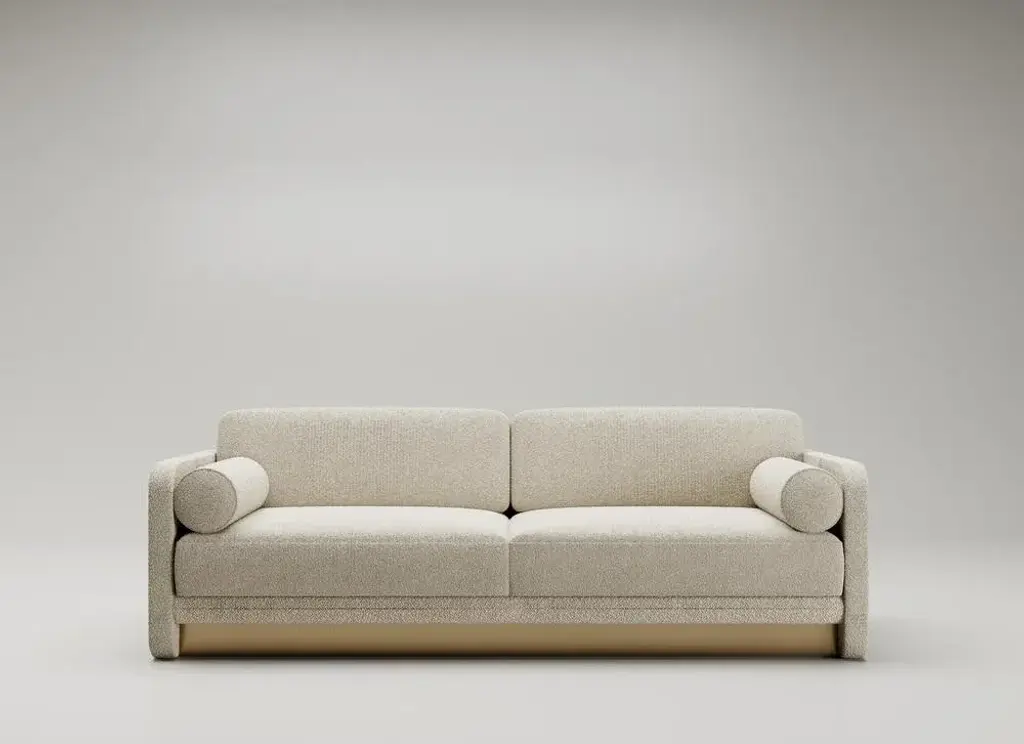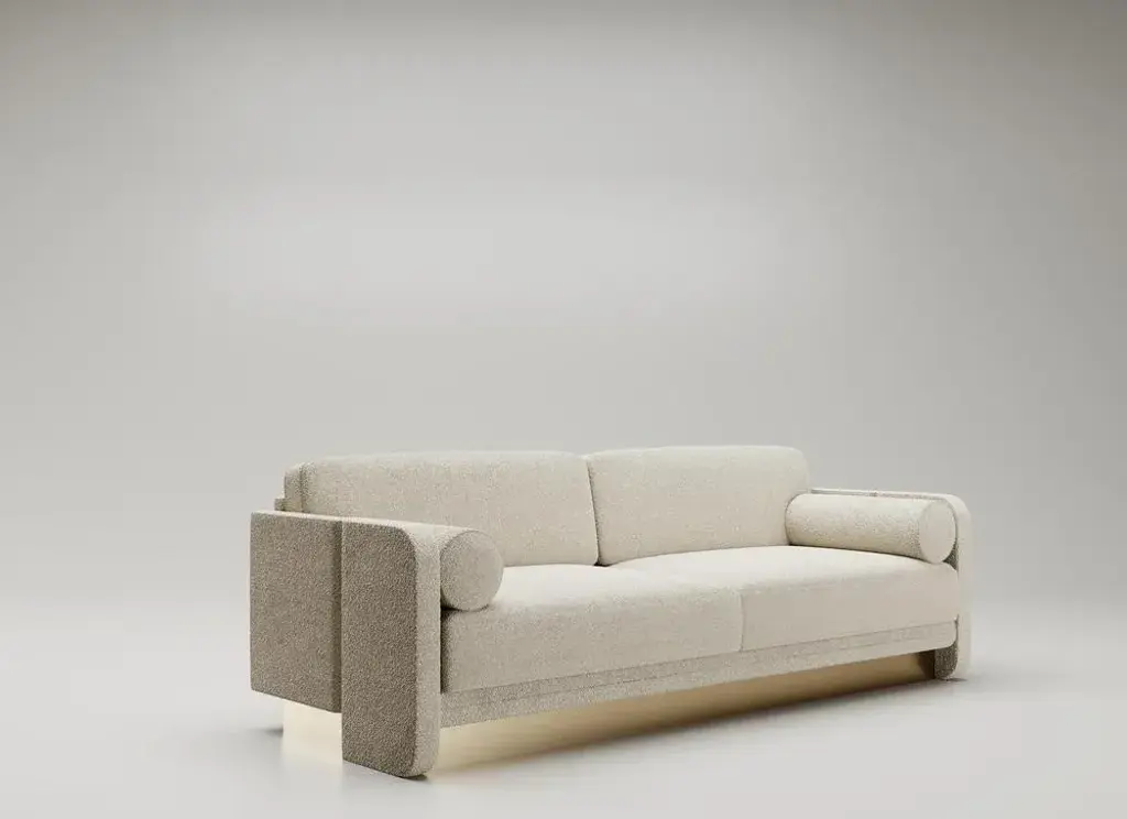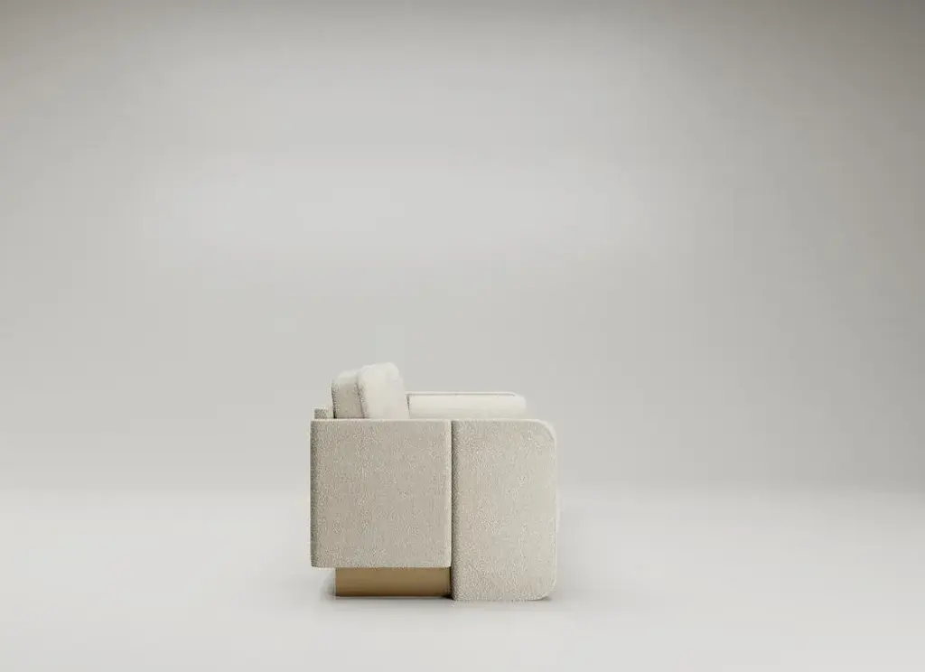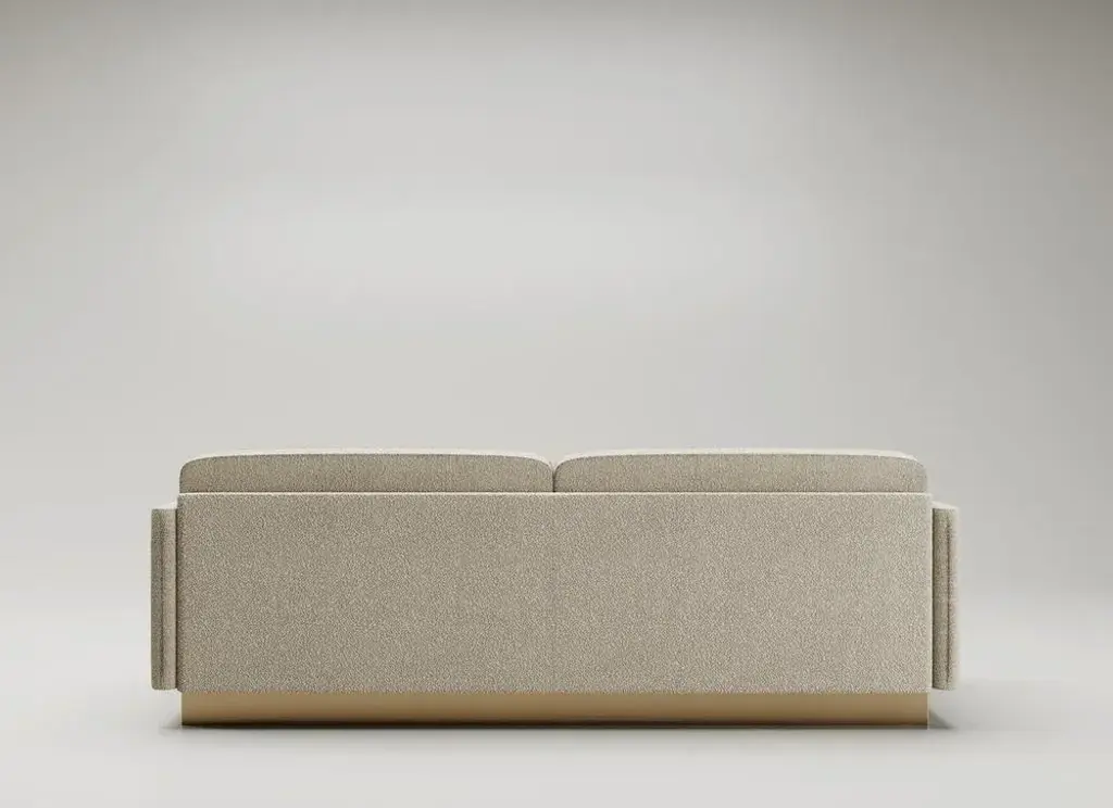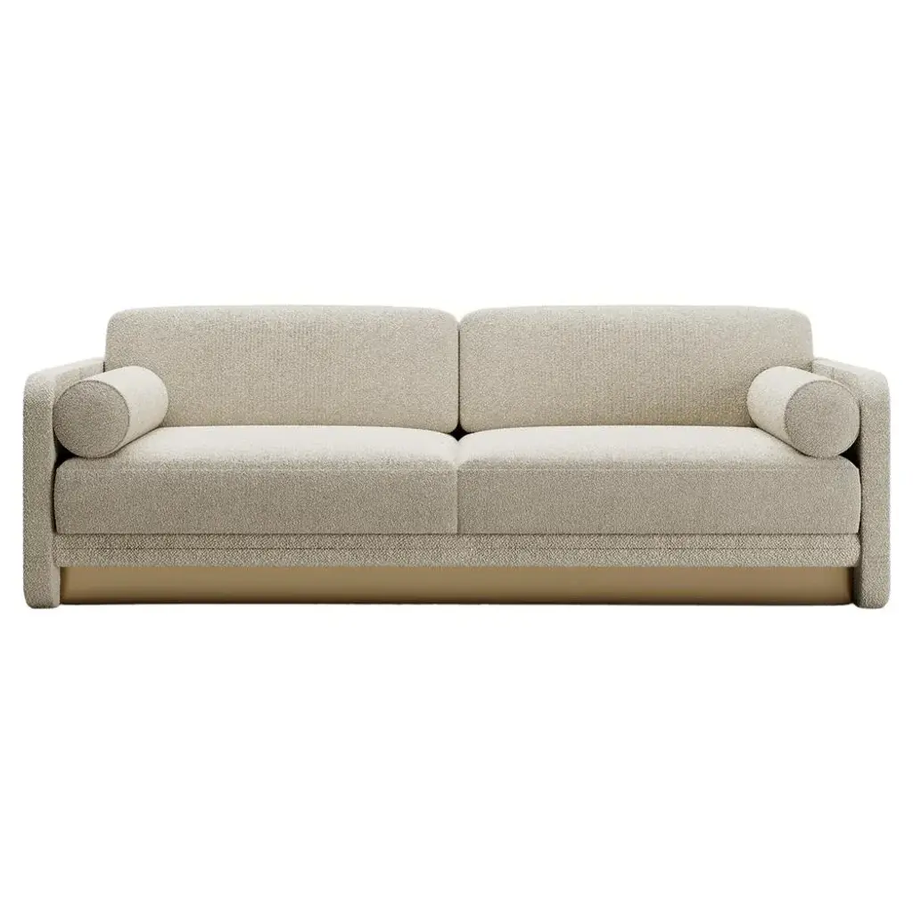 Montenapoleone Sofa by Andrea Bonini Limited Edition Dimensions: D 71 x W 220 x H 85 cm. Materials: Loro Piana fabric and Brass. Made in Italy. Limited series, numbered and signed pieces. Custom size or finish on request. Different fabrics available. Please contact us. The aim of the Edition Collection is to launch a collection of sculptural furniture elements produced in a limited series which can be made exclusively by expert and specialized craftsmen. Each piece is intrinsically connected and portrays elegance through geometry and proportions. Meticulous detail of symmetry, bold and deep lines, virtuous and ample curves, cuts and grafts can be found in every single piece. Each product encloses the complexity of its production process in a pure and virtuous form. They are limited editions, each piece signed and numbered, appreciated as art or as design. They are the result of past experiences yet the keeper of future projects.