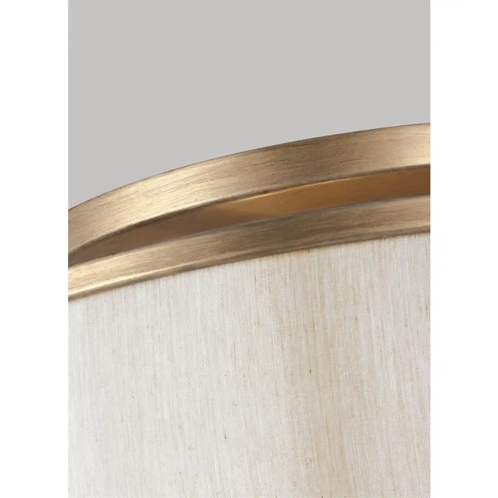 This classic semi-flush mount offers ample lighting in an understated, yet elegant design. It's made from metal in a neutral finish and mounted on a circular canopy. The textured ivory linen fabric shade adds a subtle nod to mixed-material style, while the frosted glass helps diffuse light from the five 75W bulbs (sold separately). Best of all, this versatile fixture is compatible with dimmer switches and safe to use in damp locations, so it's great for setting the mood on a covered porch or patio or adding ambiance to your shower or bath.