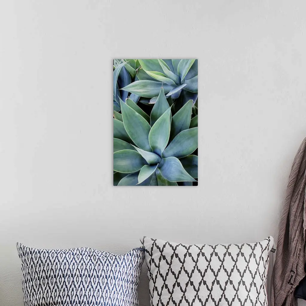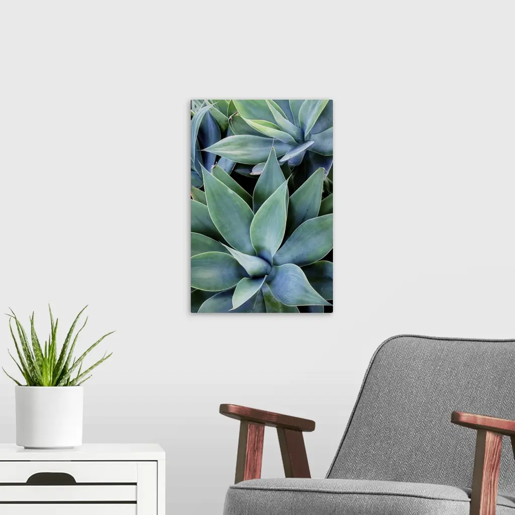 Close up photo of succulent plants with broad leaves.