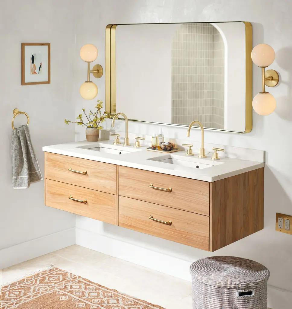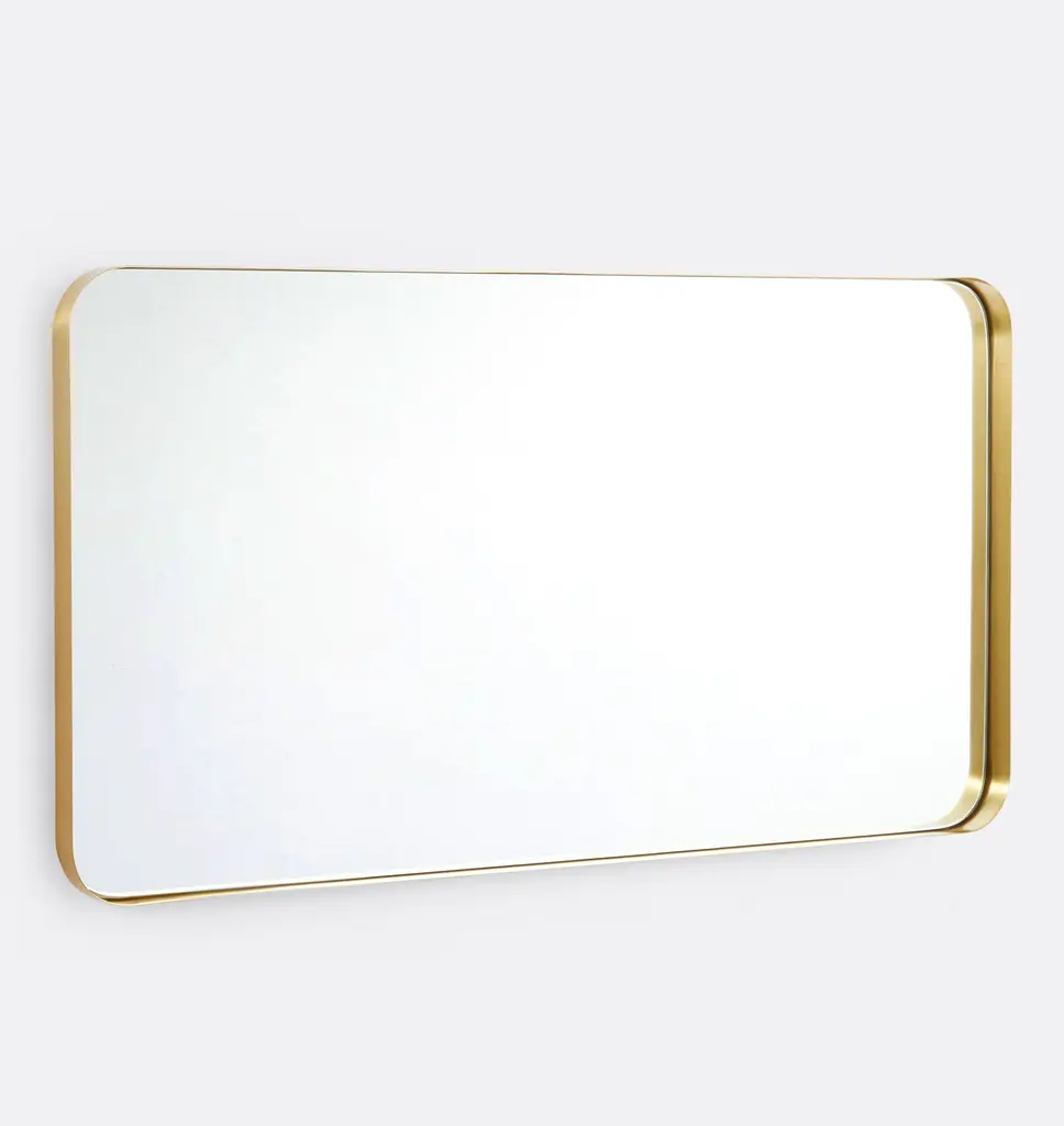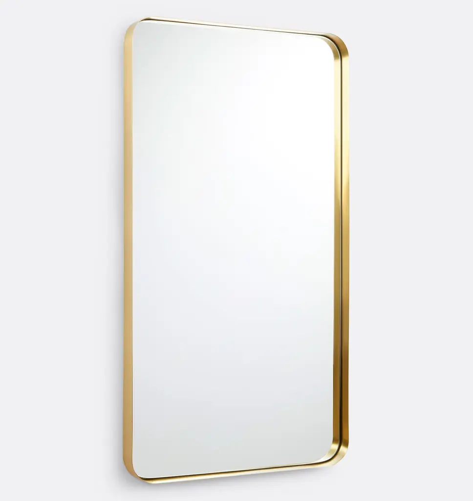 Crafted by hand with a sleek brass metal frame, this modern mirror comes in a range of versatile finishes. Its deep frame design adds visual interest to any bedroom, bath, or living space. Details You'll Appreciate Frame constructed from high quality Solid Brass Finishes coordinate with all our Hardware & Plumbing Can be hung either vertically or horizontally Product Specifications Wall mounted, using a D Ring system, mounting hardware included Premium & durable thick glass mirror, constructed with an anti-shatter backing Backed with MDF, providing extra strength and ensuring the mirror's structural integrity over time Rated for use in bathroom, covered outdoor areas & other areas with high moisture Contract Grade – Designed, Engineered and Tested for commercial use Imported
