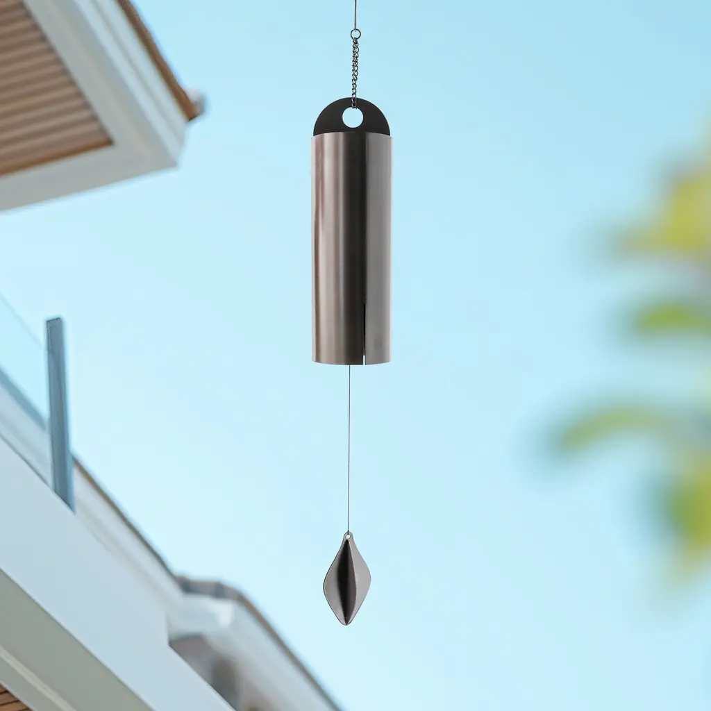 This handcrafted steel bell has a deep resonance and plays beautifully in the wind. Let the wind chimes accompany you through the wind this summer!The Deep Resonance Serenity BellDescription:- Let the wind ring accompany the wind in this summer with you!- This HANDCRAFTED steel bell has DEEP RESONANCE and plays beautifully in the wind.- This handcrafted, wind-activated bell, with its bold tone and design, functions nicely as a welcome bell at any entrance to your home or garden.- We tone our bells to unite two important ways the instrument vibrates. One is the sound of the bell itself and the other is the hollow chamber inside the bell that acts like an organ pipe.- This steel bell has been coated with a handsome, durable finish, so you can enjoy it for years to come. Hang your Heroic Windbell in a breezy spot and let it play in the wind.SPECIFICATIONS:- Material: Metal.- Medium: 19.6"x3.3"x3.3"- Large: 43.3"x5.3"x5.3"PACKAGE INCLUDED:1 * Deep Resonance Serenity Bell Windchime.