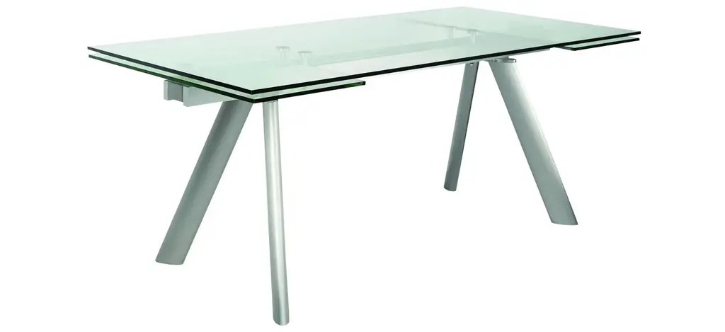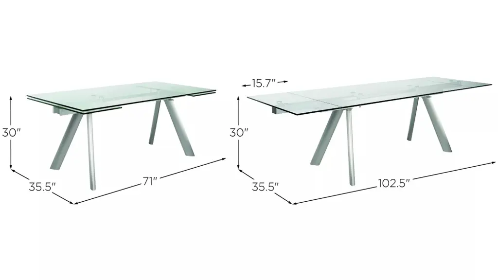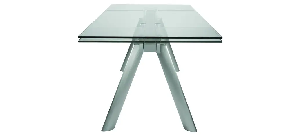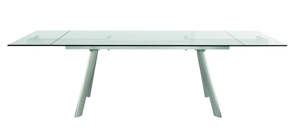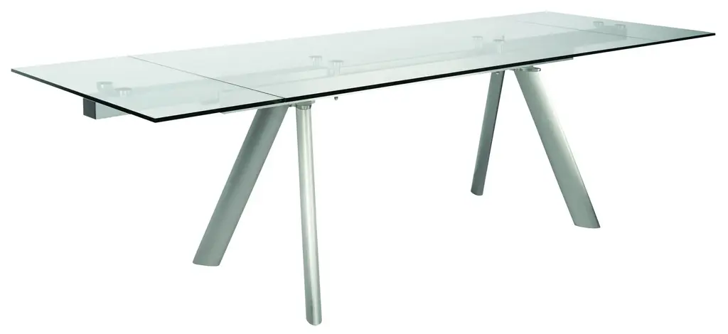 Delano 102" Rectangle Extension Table with Clear Tempered Glass Top and Brushed Stainless