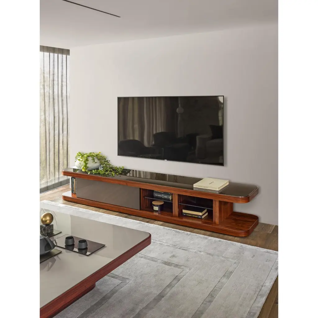 Delano 5045 TV Unit by RedecoDimensions: W 250 x D 50 x H 42 cmMaterials: Lightened mdf and mdf structure. One sliding doors. Four bronze glass shelves. ReDéco is a truly solid company, capable of building and creating furnishings, but also a company that can transmit the past and wonderful emotions, experiencing the design of interiors and the evolution of a way of being. Each step leading up to the creation of the final product is subject to meticulous checks and attention, thanks to the management and direct control of the entire production process.