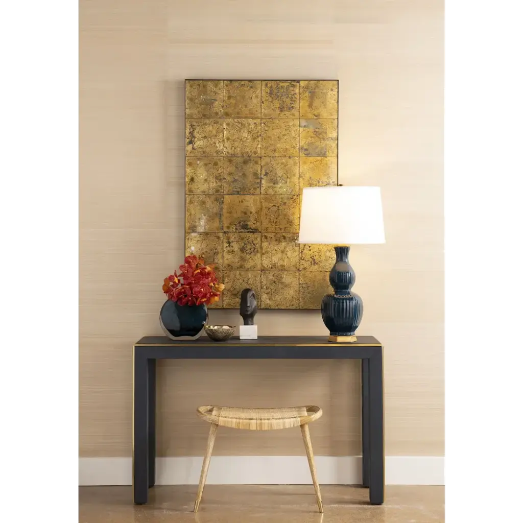 The gorgeous Delft Lamp presents a modern take on double gourd pottery, a design which dates way back to China’s Song Dynasty. It’s not hard to see why the silhouette has persisted in popularity more than one thousand years later. The voluptuous shape, rendered in high-gloss Chinese porcelain, stands as a traditional nod to the feminine form, here contrasted by a handsome navy blue finish. Light, vertical ribbing gives the curves of the Delft a naturally elongated feel, as its geometric gold-leaf base adds an extra bit of allure.