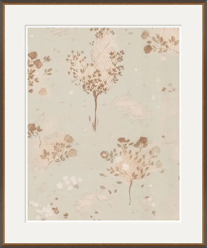 Delicate Tree Green And Beige And White Framed Art