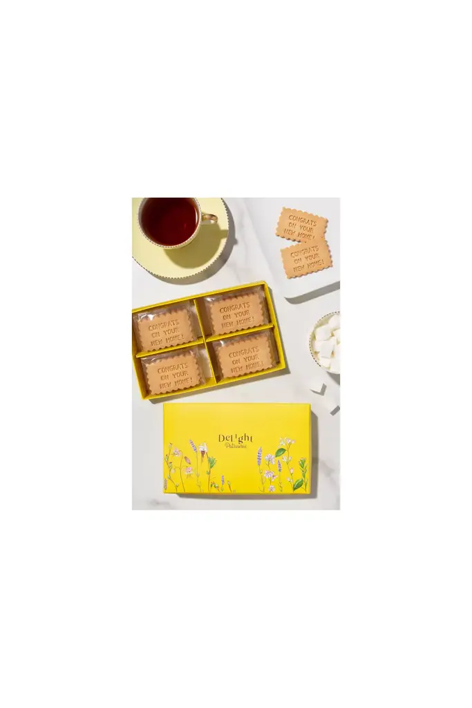 **Please note that all sales are final.**Customize your message on a cookie card for any and every special occasion, no matter what it is: birthday, baby, anniversary, housewarming, an encouragement, or a good wish, with a name or a date! Well gladly wrap your celebratory message on these crispy and buttery vanilla shortbread cookies for your loved ones, so that they have no choice but to think of you with every bite they take. All cookies are handmade with love, using only 6 quality ingredients with a delightful yet not-too-sweet flavor that is sure to tug at their heartstrings.Once you place an order, a member of the Delight Patisserie team will reach out to you for your custom message within 48 hours.* A maximum of 12 characters each line (including spaces and punctuations), up to 3 lines. * 1 message per box* All messages will be centered and in capital letters* 24 cookies will be individually wrapped and beautifully packaged in a solid floral box Delight Patisserie was founded in 2017 by Celine, a pastry lover trained in a pastry school in Paris. Ever since she moved to Los Angeles, she had a dream to create special sweets that spread a little bit of love and joy to people we care about, especially those with an extra-special place in our heart!#### *Ingredients:* * Flour, butter, powdered sugar, cage-free egg, vanilla extract, salt#### *Dimensions:** Box measures 8 L x 4.75 W x 2 H* Cookie measures 2-3/4 L x 1-3/4 W x H* Images by Heather Marie Collins