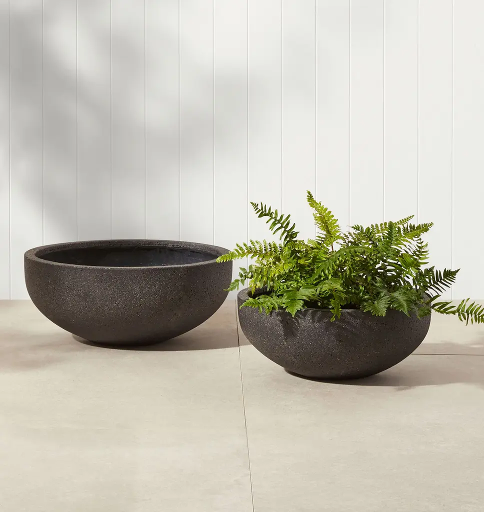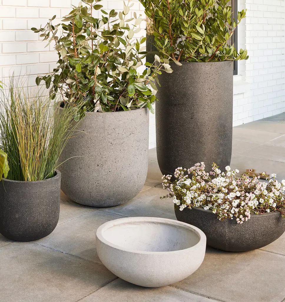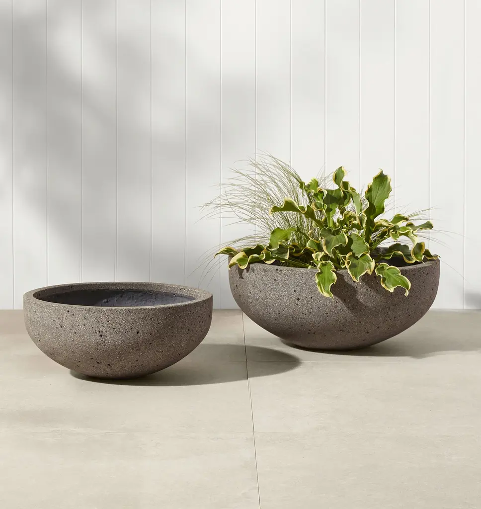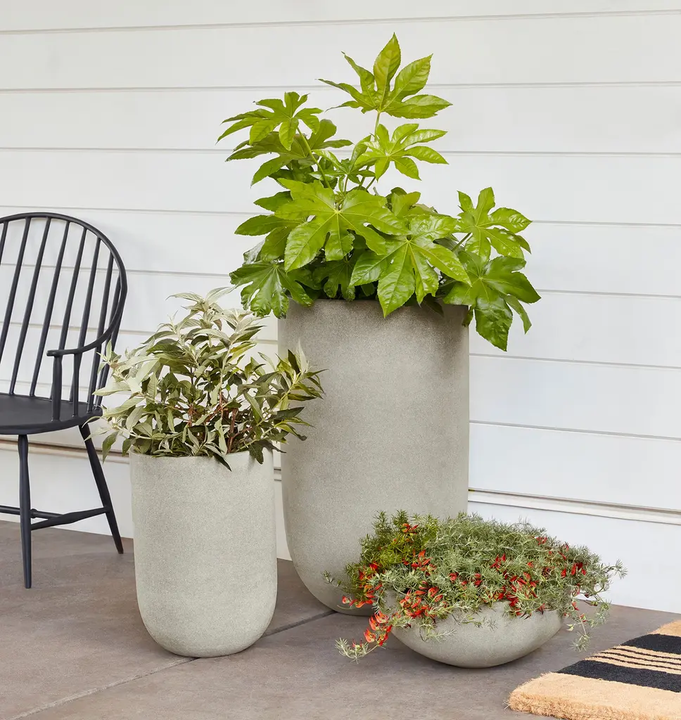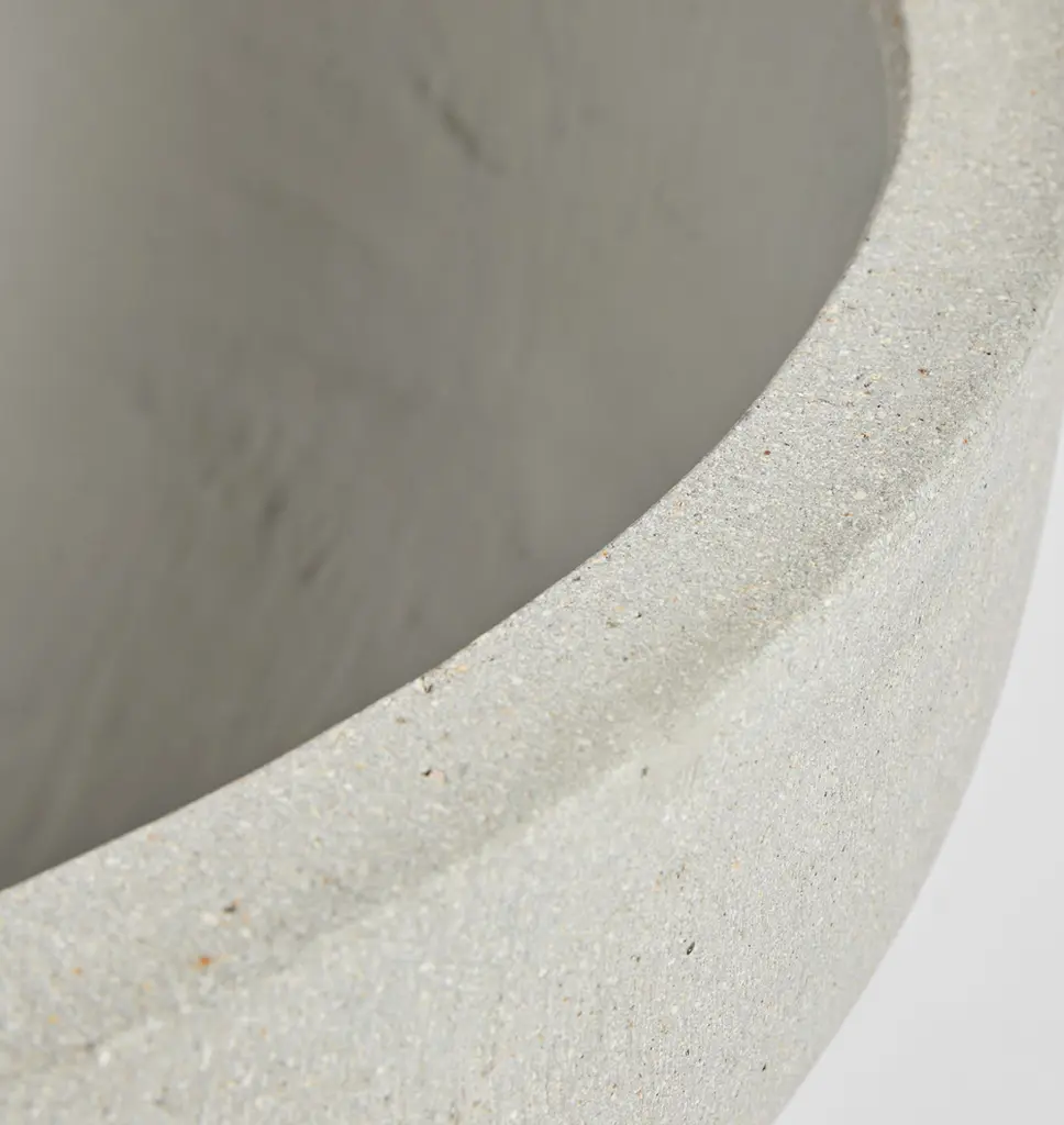 The Dell All-Weather Planter provides a durable home for your favorite plants. The rugged, industrial-style texture is made from ficonstone-a lightweight material that's frost-proof and will withstand cold winters with adequate drainage. Details You'll Appreciate Lightweight ficonstone withstands cold weather Inside coating prevents condensation Product Specifications Ficonstone: 50% sand, 41% cement, 6% fiberglass, 3% other Drainage hole with rubber plug included Imported Care Instructions Do not fill pot with soil higher than 80% of the height of the planter.