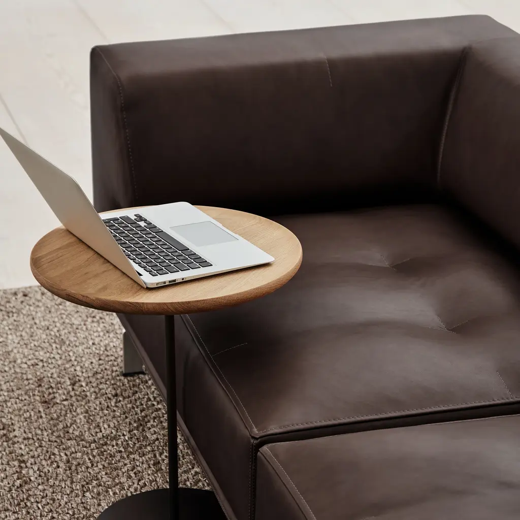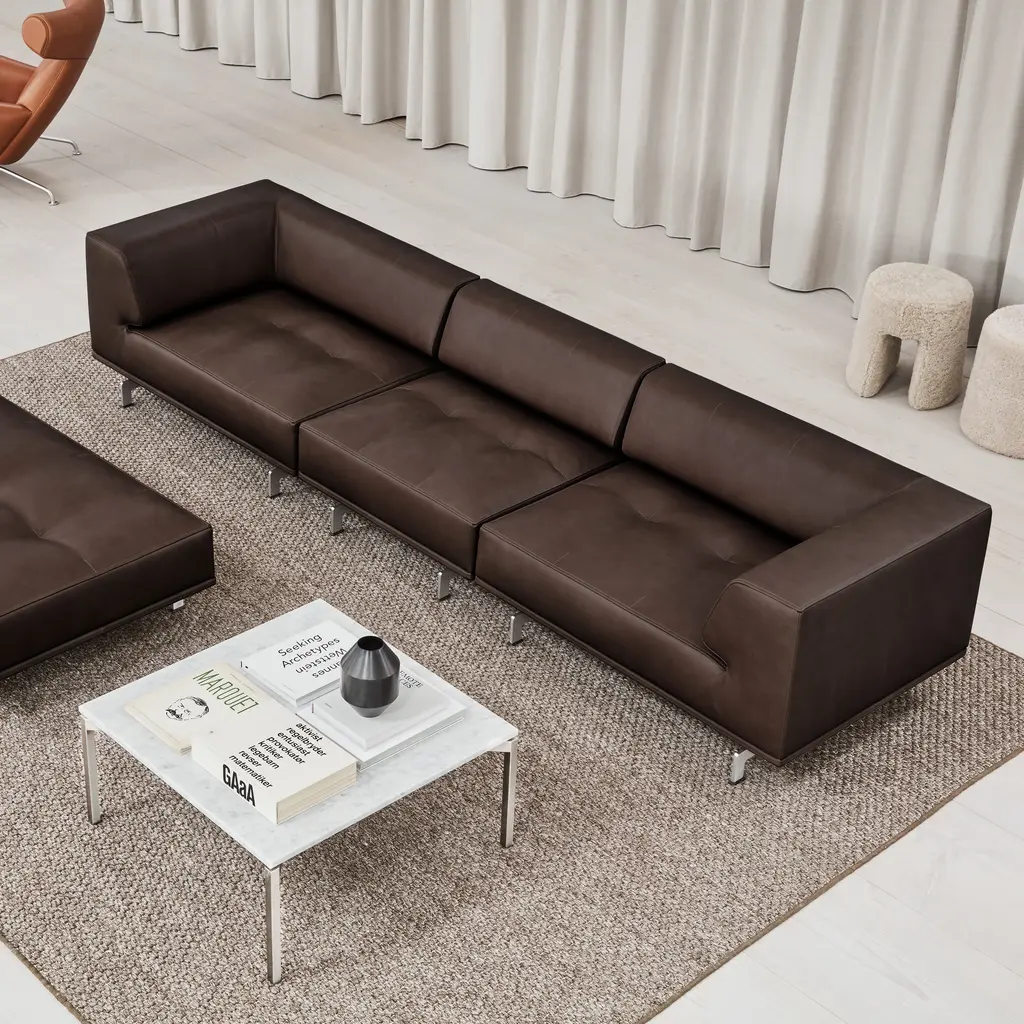The Delphi Elements End Module 180 offers generous seating, designed for both standalone use and seamless integration into larger configurations. Built with a wooden inner frame, nozag springs, cold-cured foam, and a down-foam granulate duvet, it provides enduring comfort. Upholstery options include fabric or leather, supported by a base available in brushed aluminum or solid wood. As part of Fredericia’s 14-piece modular system, it offers flexibility for various arrangements.