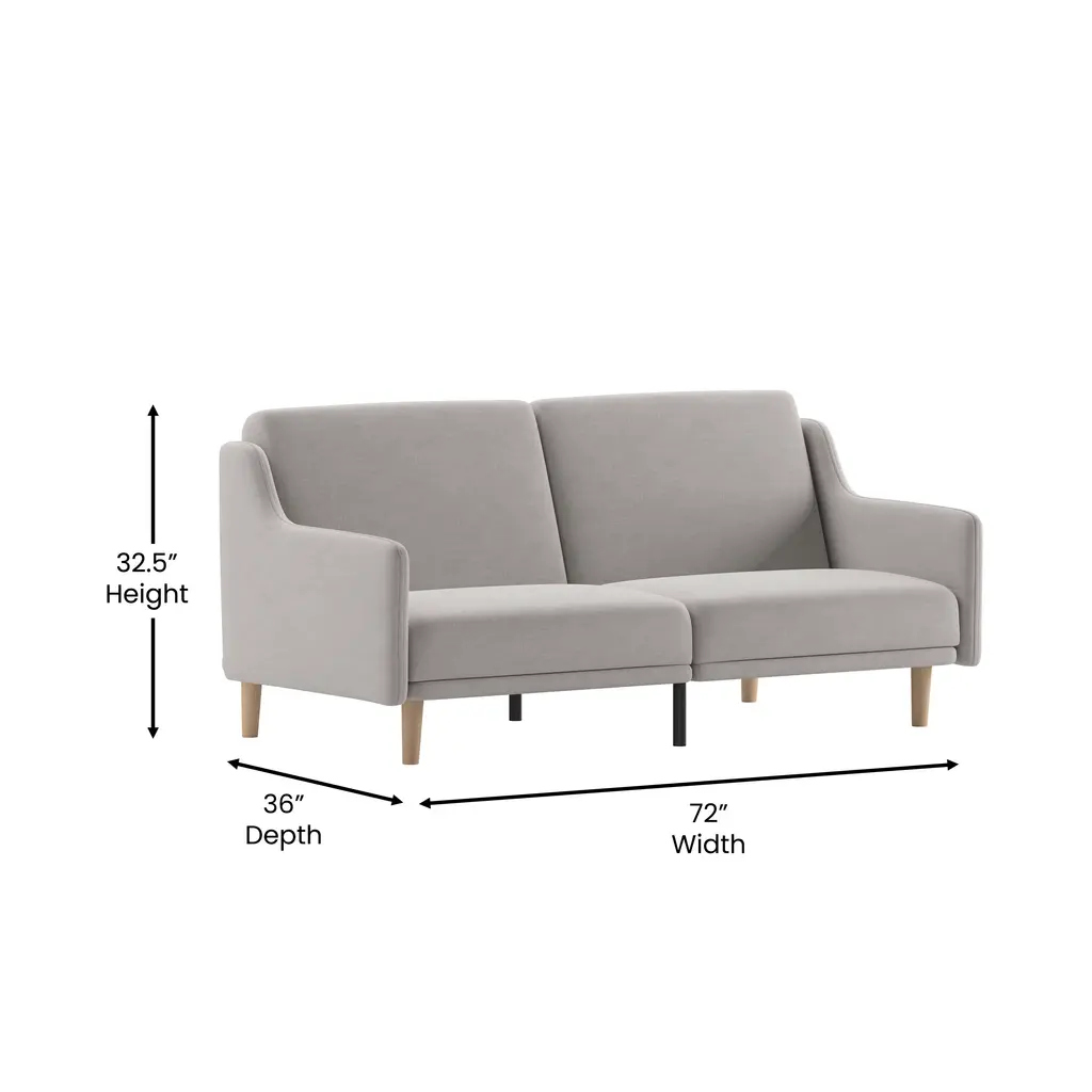 Delphine Premium Convertible Split Back Sofa Futon With Curved Armrests And Solid Wood Legs