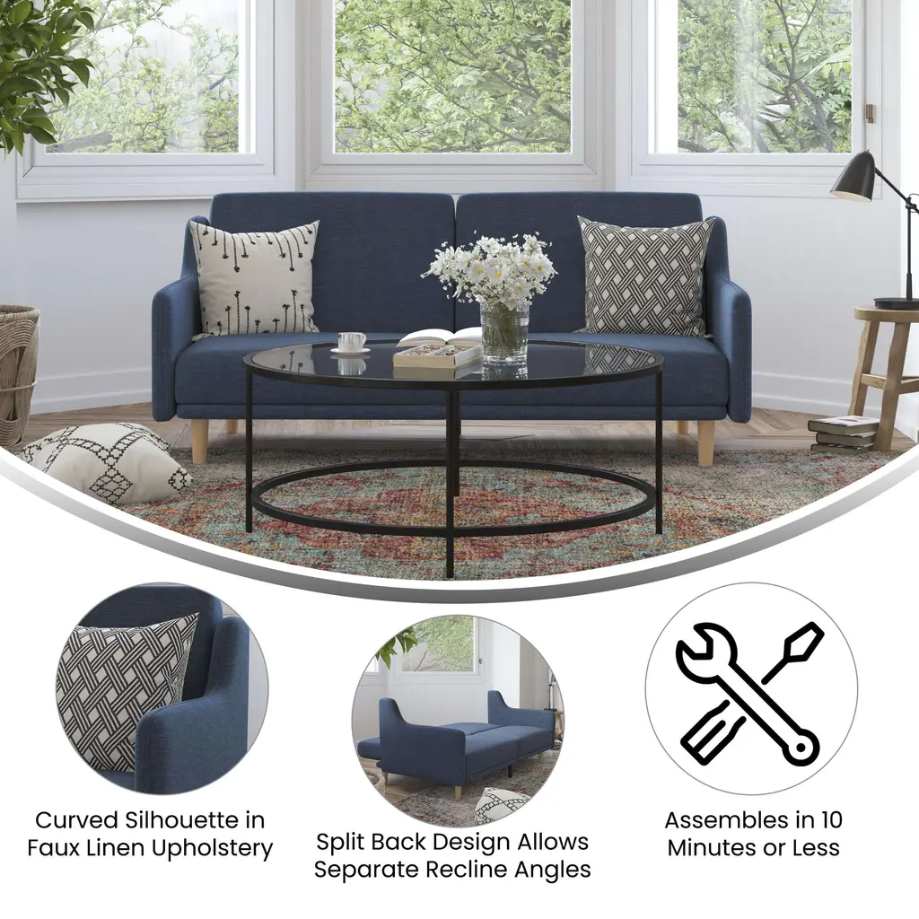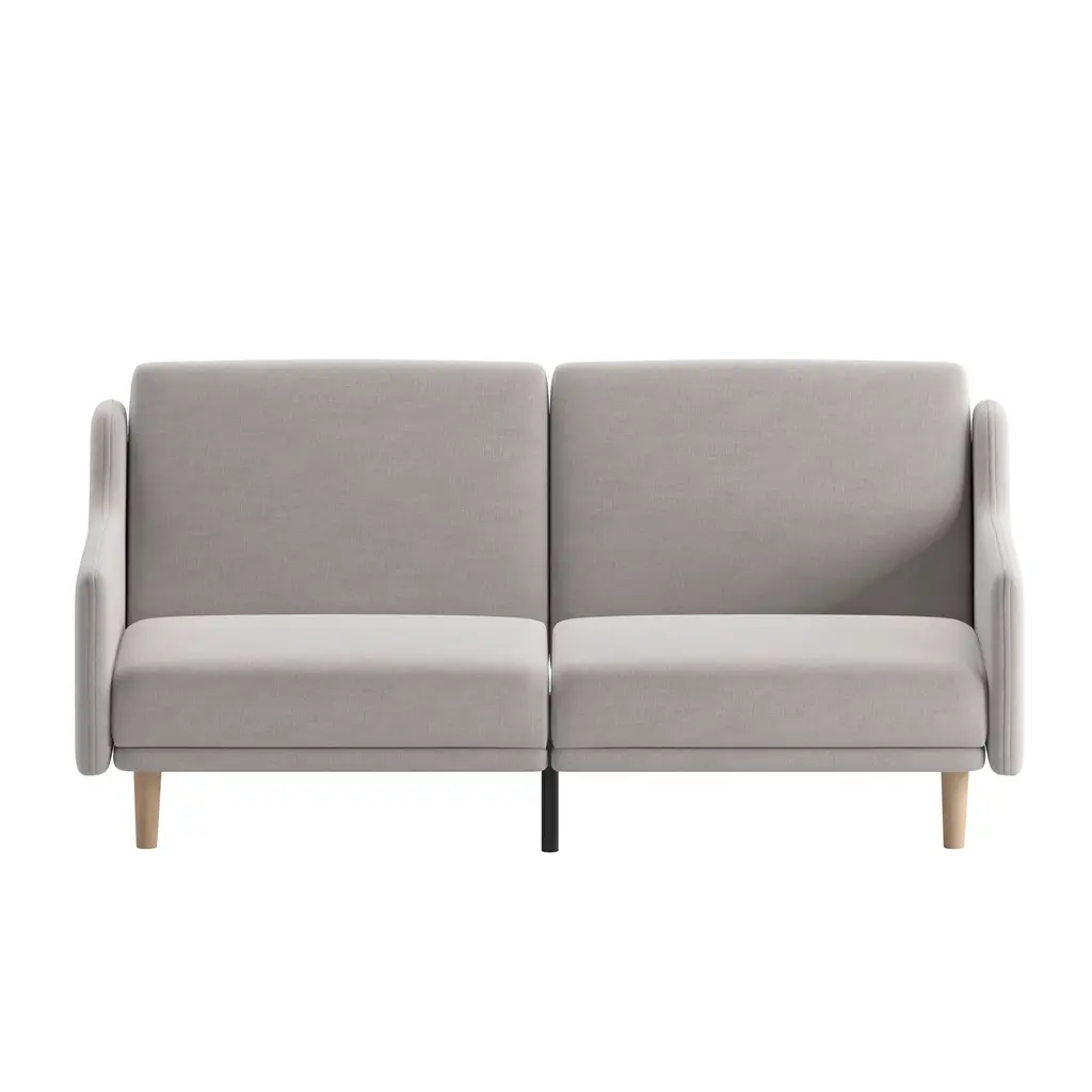 Delphine Premium Convertible Split Back Sofa Futon With Curved Armrests And Solid Wood Legs