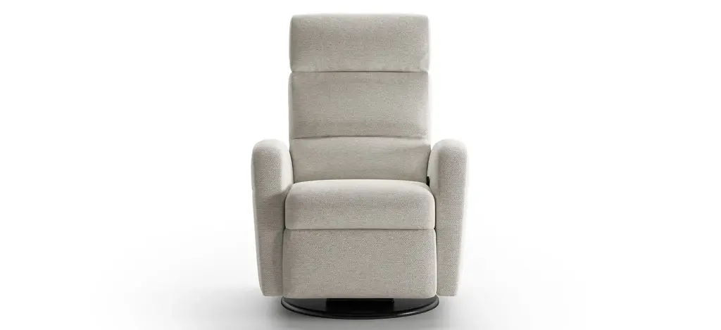 Delphine Taupe Fabric 29" Power Swivel Recliner With Adjustable Headrest & Battery