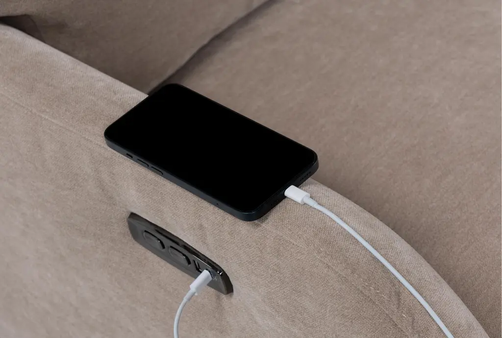 Experience ultimate comfort with the Delphine Taupe Fabric 29" Power Swivel Recliner featuring an adjustable headrest and battery. This recliner offers a perfect blend of style and functionality, making it an ideal addition to your living room. The mushroom color and 100% polyester fabric ensure a soft and inviting feel.
