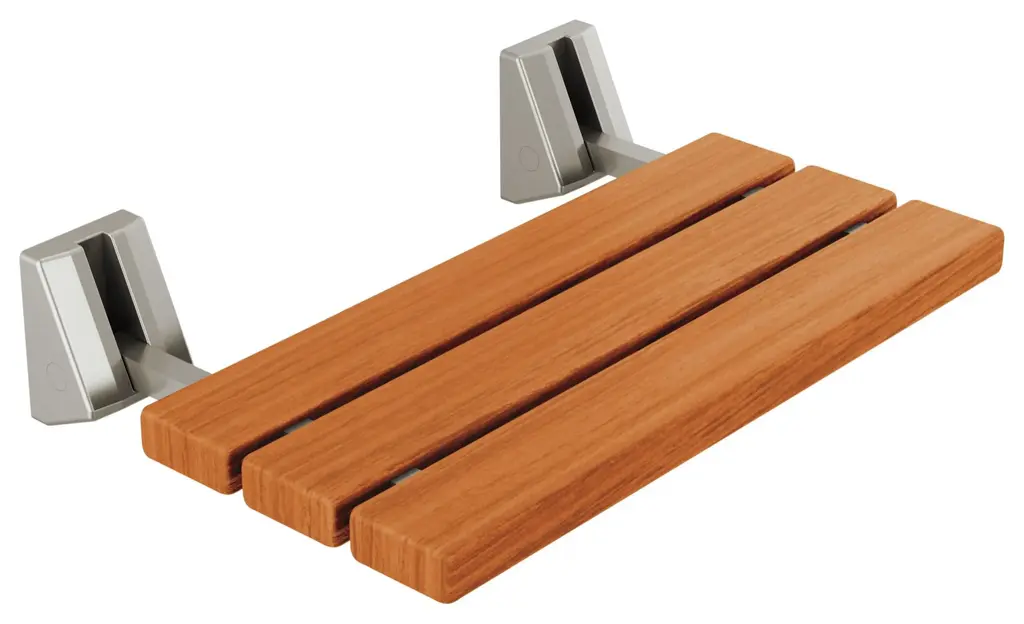 Delta 5SE-SBS-6 Features: Covered under Delta's 2 year limited warranty Package includes: Seat assembly, (6) flat-head screws, (6) plastic anchors, (2) wall brackets, (2) bracket covers, (2) mounting pins, and (4) pin caps Lumicoat Finishes are guaranteed to resist water spots and mineral buildup and easily wipe clean without chemicals or cleaners Fold-up wood seat Mounting brackets must be anchored to a solid structure Seat mounts on 16" center studs, header, masonry, brick wall, or block wall Wall brackets to be mounted 17" - 21" from finished floor to center of upper mounting screw holes Teak wood with brass tubular support arms All hardware required for installation included Delta 5SE-SBS-6 Specifications: Seat Height: 17" to 21" Width: 19-1/4" (left to right) Depth: 13" (front to back) Weight Capacity: 250 lbs. Take a load off during your steam sessions with a wall mounted, foldable shower seat. Since steam showers typically last about 20 minutes, a shower seat ensures you a comfortable session without compromising your precious shower space! Enjoy your shower seat with peace of mind.