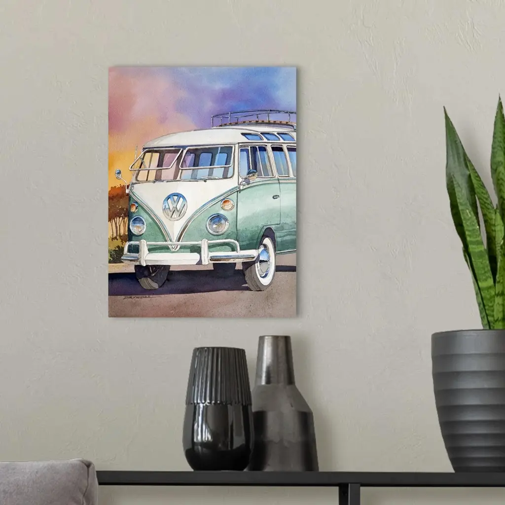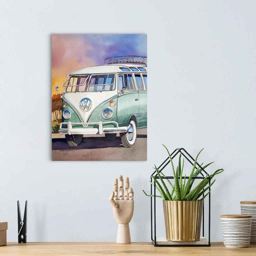 Watercolor of a 1963 23 window VW bus.