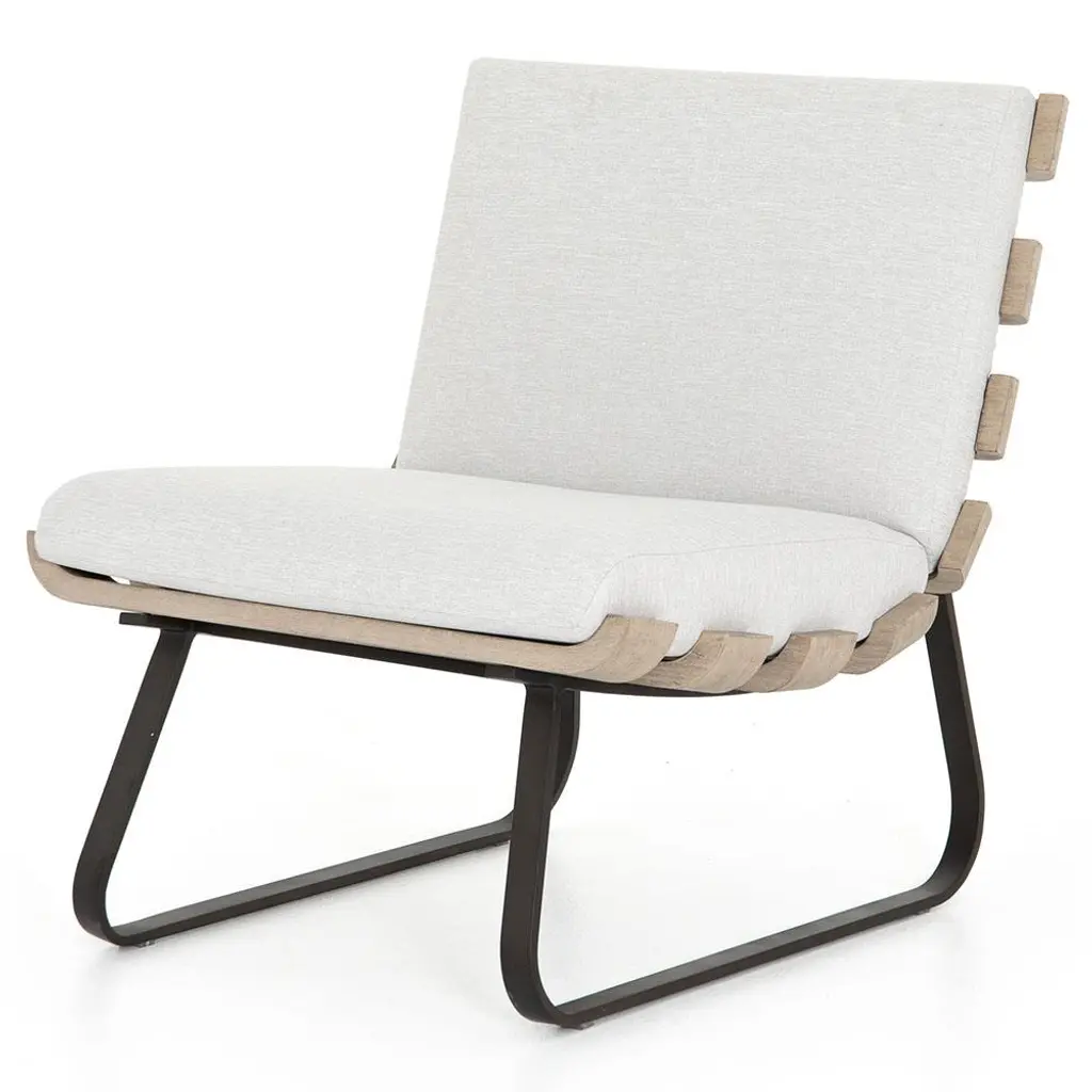 Demi Modern Natural Teak Wood Grey Cushion Seat Outdoor Lounge Chair