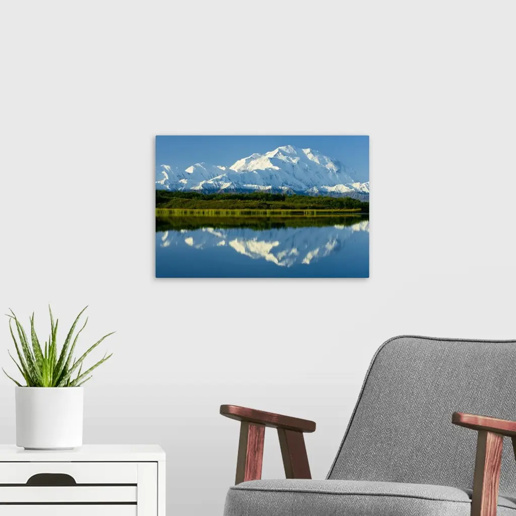 Denali (Mt. McKinley), at over 20,000 feet, the highest mountain in North America, rises above the Alaska Range in Denali National Park, Alaska.