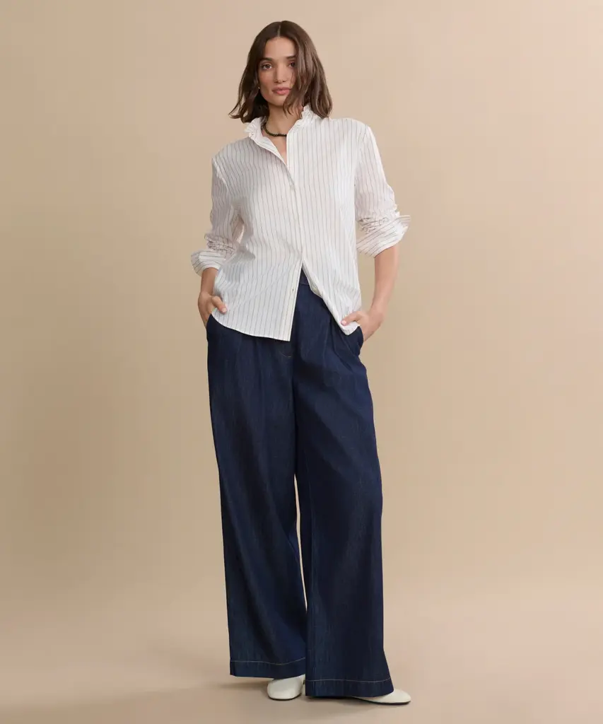 The perfect spring and summer trouser didn’t exist—until we made this. Fashioned from Italian fabric, this denim trouser brings a breath of fresh air to every element of your sun-filled wardrobe. Don’t forget to pair it with the Parker Oversized Shirt in Denim for a Canadian tuxedo moment.