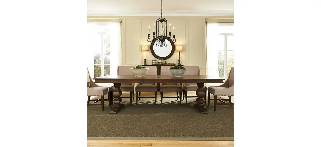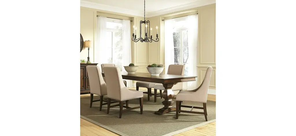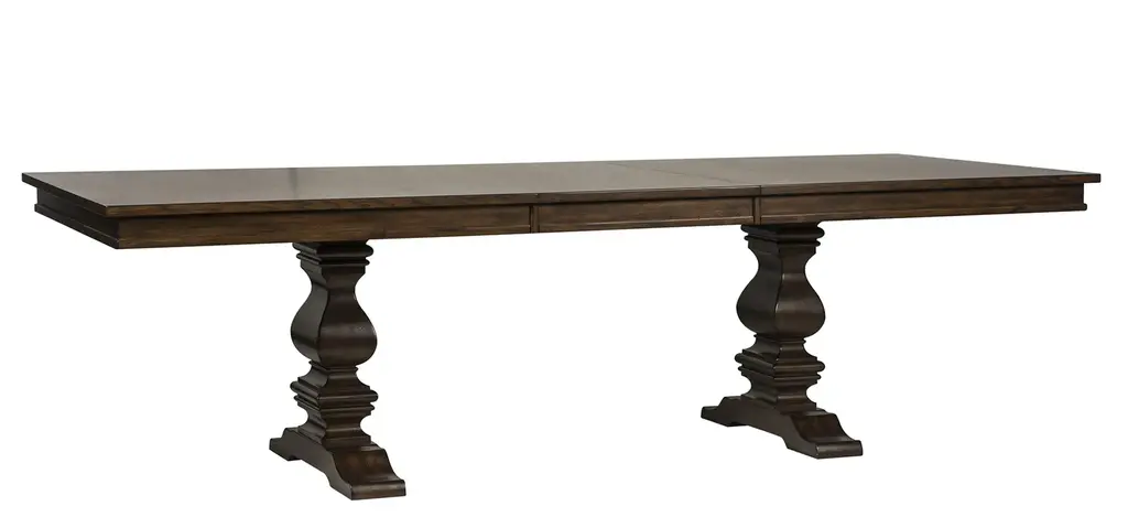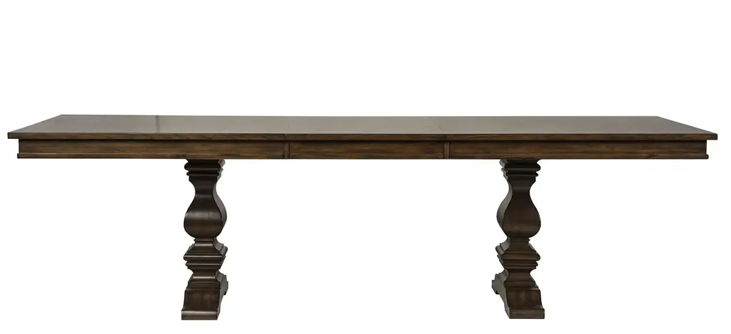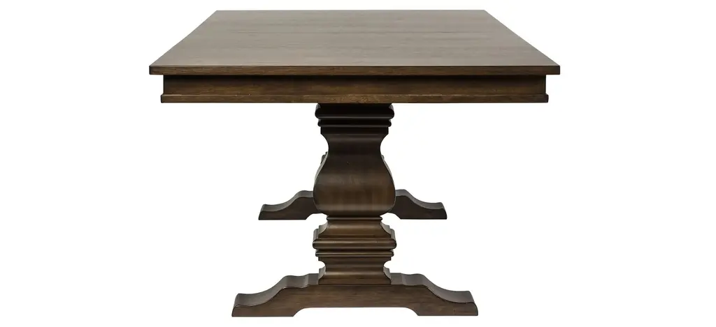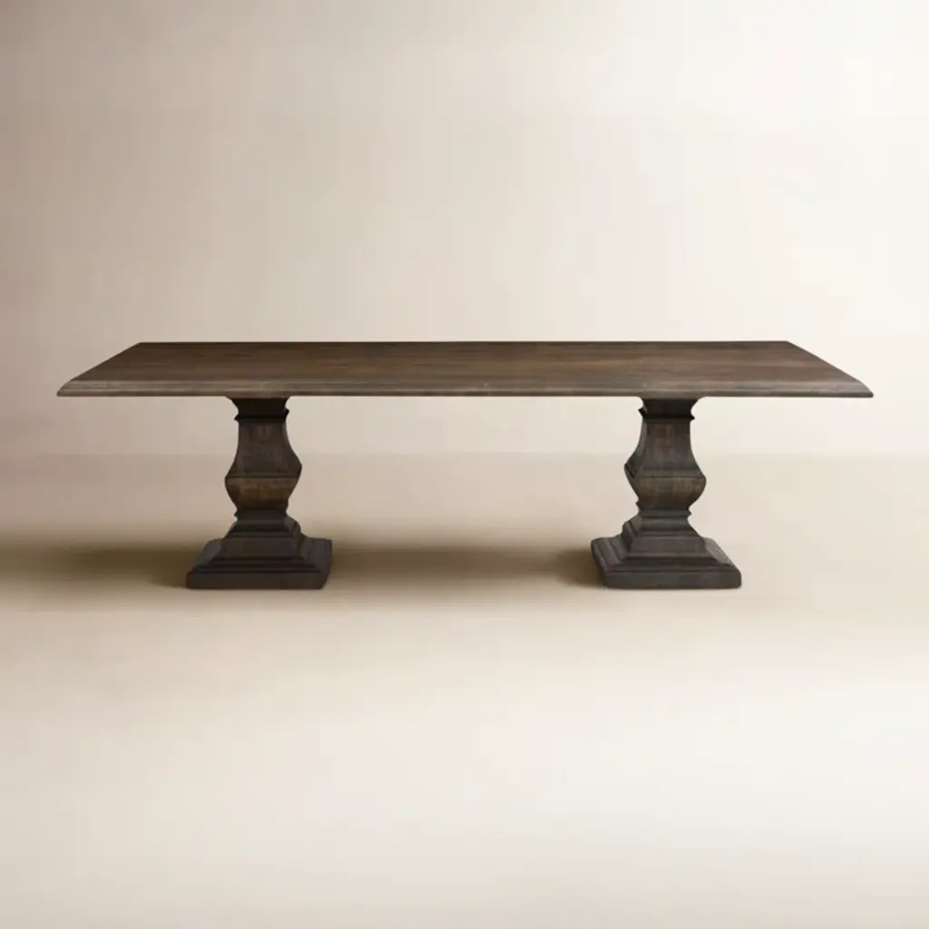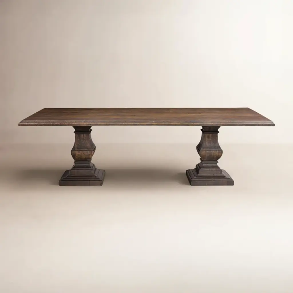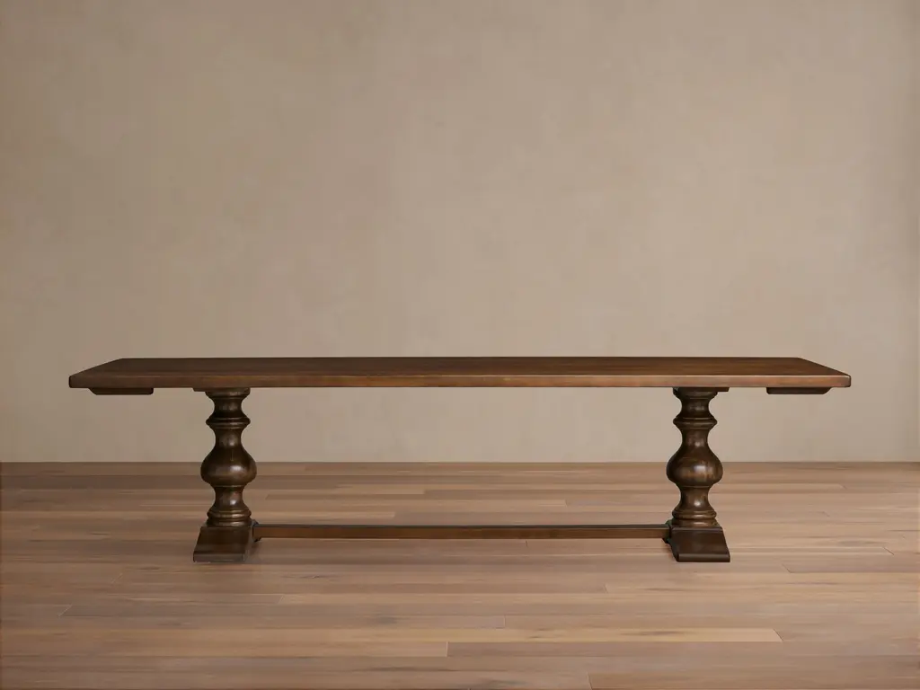 Denise dining table is inspired by a 17th century French antique. Pulling in Tuscan elements for the dining the rectangular trestle table features heavy square turned bases.