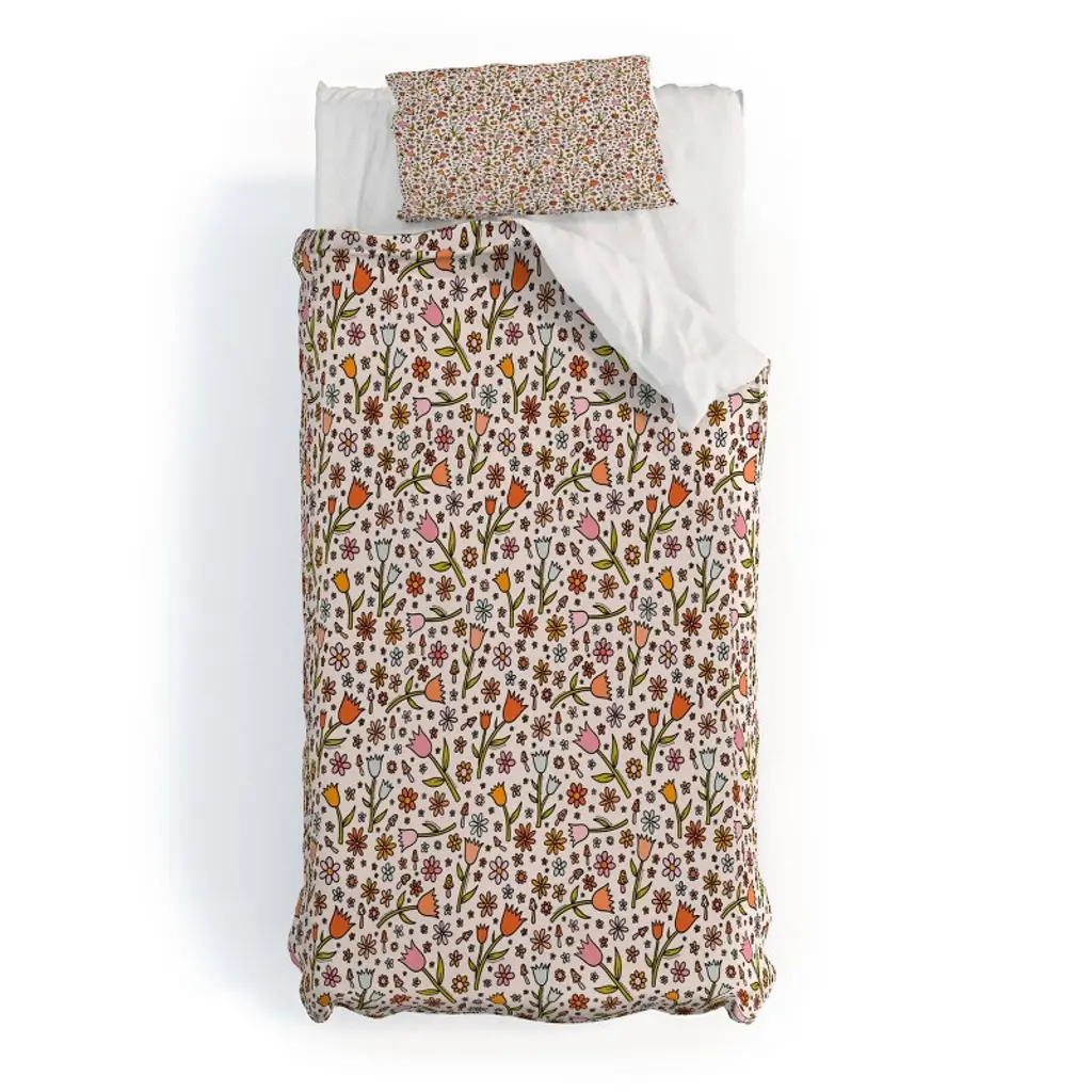Deny Designs 3Pc Queen Doodle By Meg Tulip Print Kids' Duvet And Sham Set