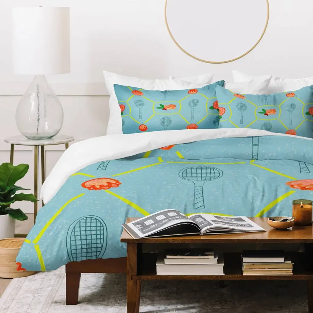 Deny Designs 3Pc Queen H Miller Ink Illustration Tennis Rackets Roses Kids' Duvet And Sham Set Blue