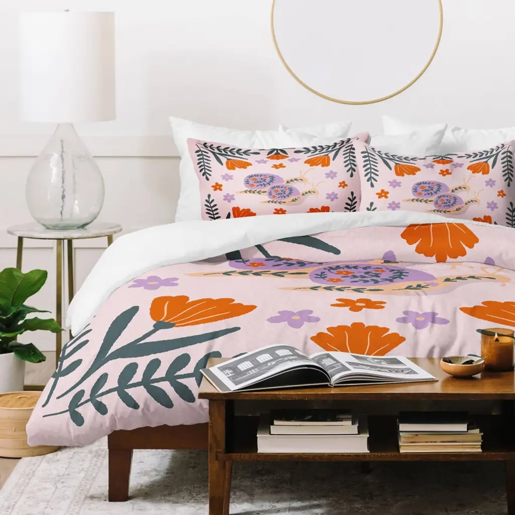 Deny Designs Kids' 2Pc Twin/twin Xl Angela Minca Snails And Flowers Duvet And Sham Set