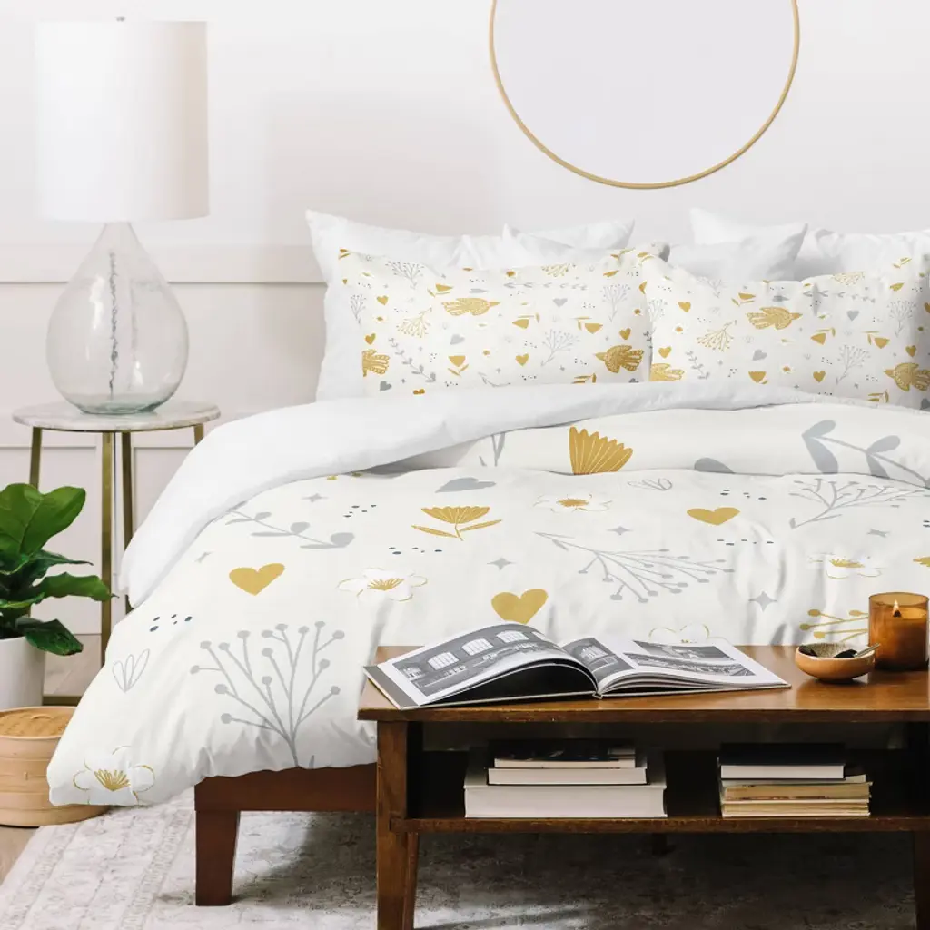 The Deny Designs duvet cover set is an ultra-soft bedding made from 100% premium microfiber polyester, 90 gsm (equivalent to 300 thread count) that offers year-round comfort. The duvet interior includes corner ties to hold the duvet insert securely in place with a zipper closure. The duvet and shams feature your print on the front with the reverse side a crisp, clean white to complement any decor style and is printed using non-toxic inks. This set requires a duvet insert or comforter for the included duvet cover. Color variations between on-site previews and printed fabric may occur.Machine wash cold, gentle cycle. Tumble dry low. Do not bleach or iron. We recommend washing prior to use to increase softness. Every order is custom printed in the USA. And the best part? Every purchase pays the artist who designed it—supporting creativity worldwide.
