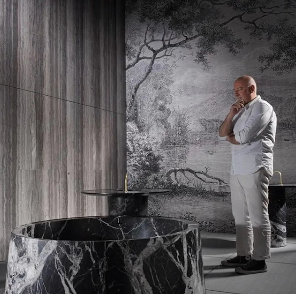 Desco collection is the results of a renewed collaboration between Pibamarmi and the designer Vittorio Longheu.This work is defined by a peculiar set of elements, strongly characterized by circular shapes and minimal asymmetries in the volumes. The large edges of the washbasins turn them into small tables you can indulge around while doing your everyday activities. Bathtubs as well have large edges to lean objects and daily actions on. On one side, thanks to their neat and monolithic shapes, these objects convey a strong substance and formal clarity. On the other side, being studied to be used in multiple ways, they manifest the intention to overcome the traditional limits of the bathroom environment. Hence a dialogue with other complements and design objects, both contemporary and from the past. Desco collection welcomes in this way many eclectic and enriching combinations, ideally connecting with the typically Italian approach to modernity, marked by those peculiar artists such as Gio Ponti defined in 1928 as “diverse wits”, all committed to look for personal balances in shapes and materials in the interior projects, crossing the borders of arts, manufacture and industry.