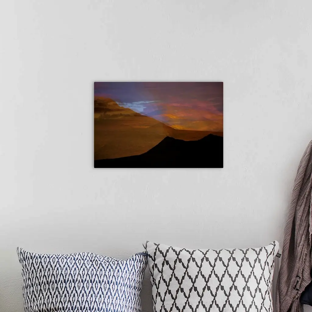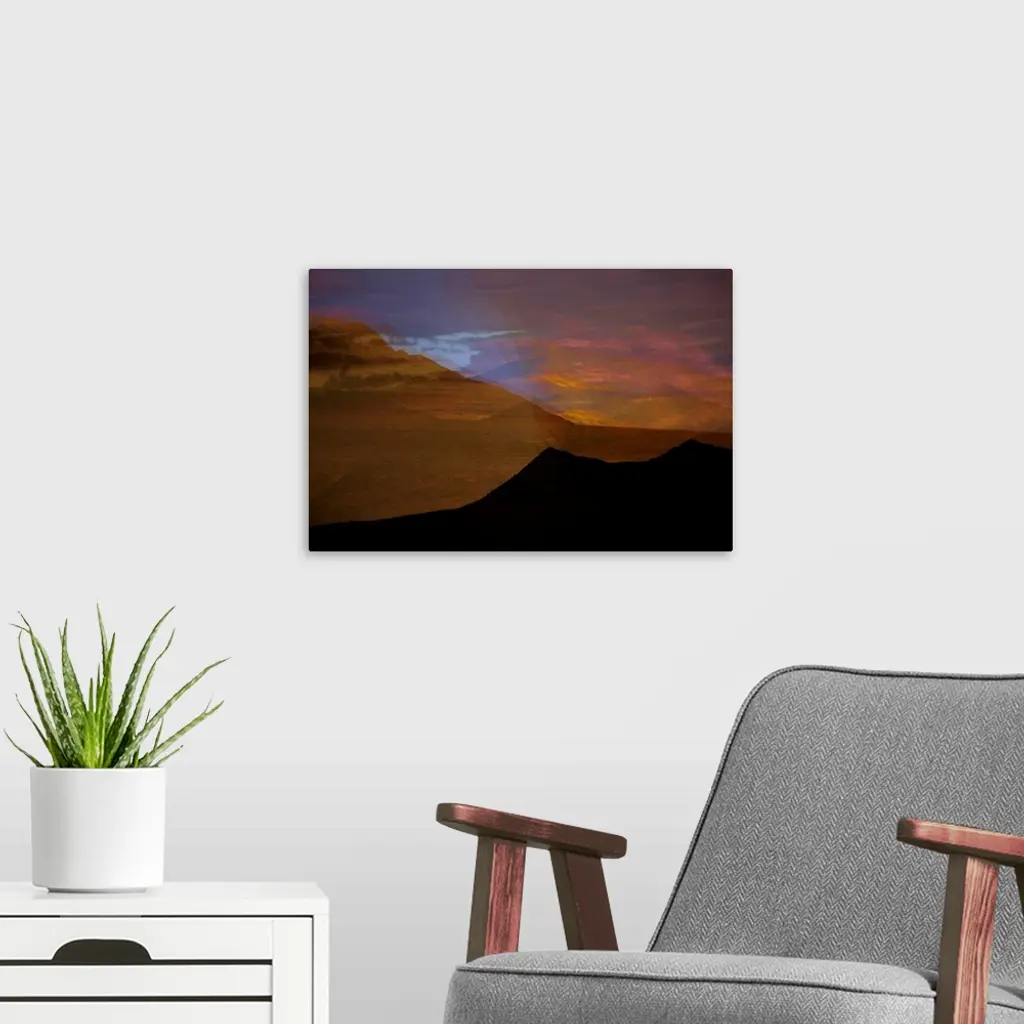 Abstract photograph of a desert landscape with rolling hills and sand, created with multiple layers.