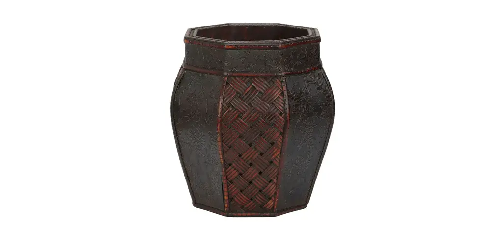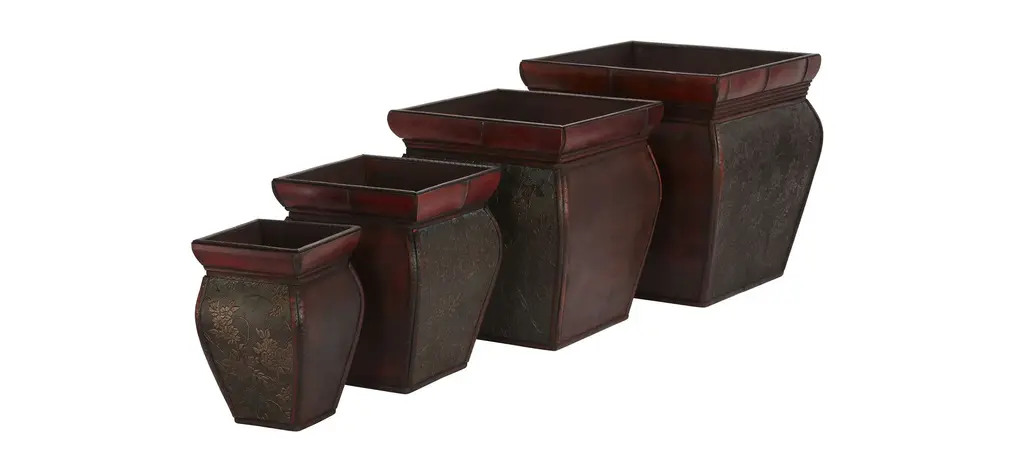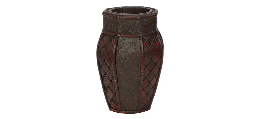 In a set of two, to allow pattern matching, yet in different sizes for different arrangements, our intricately designed Design and Weave Panel Decorative Planters is sure to please. Enjoy the dark colored cross weave patterns next to the pressed floral design against a dark background. Each is separated by segmented trim and sure to delight admirers desiring a closer look.