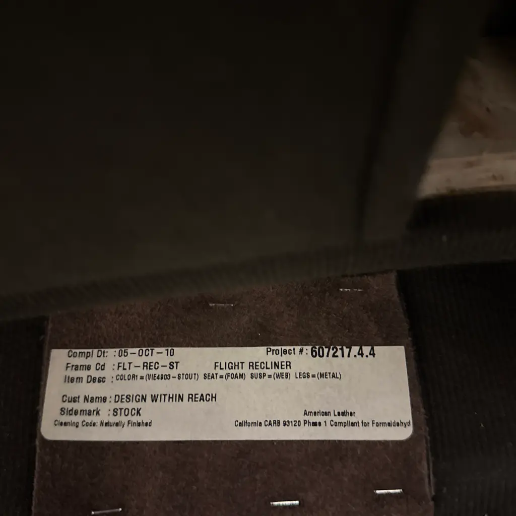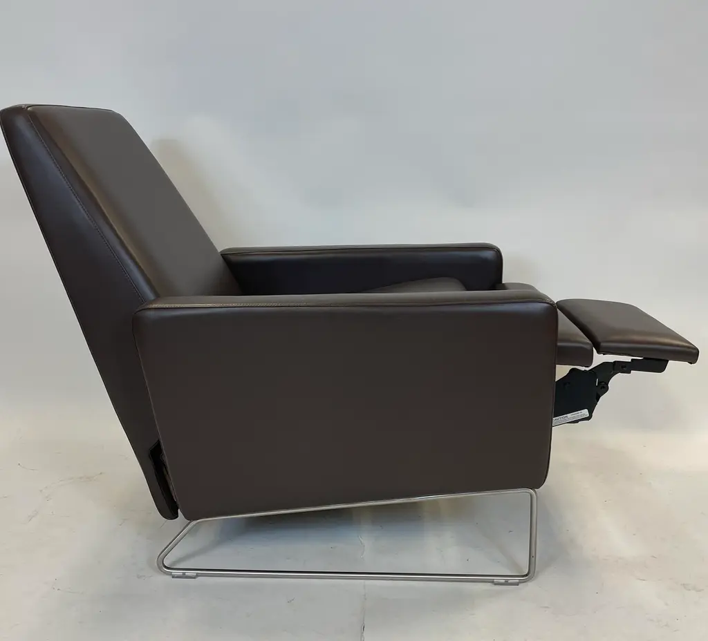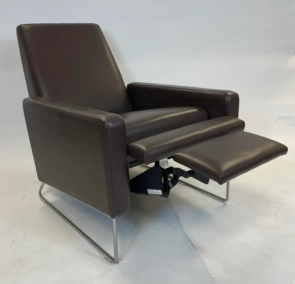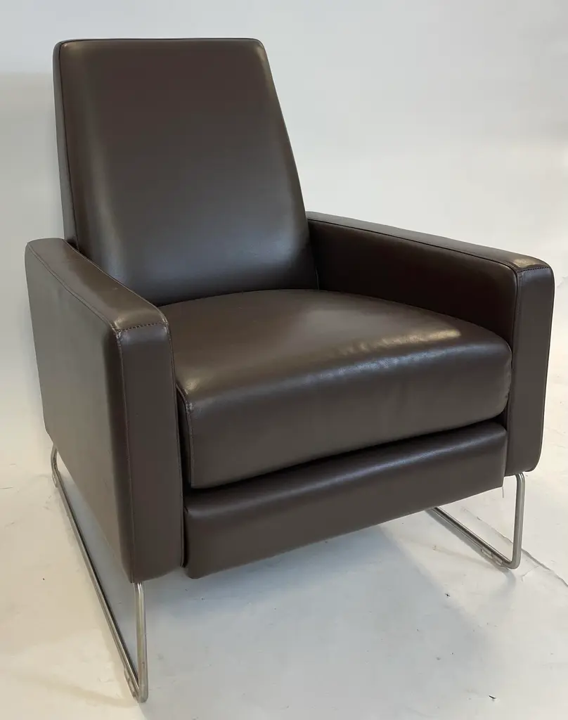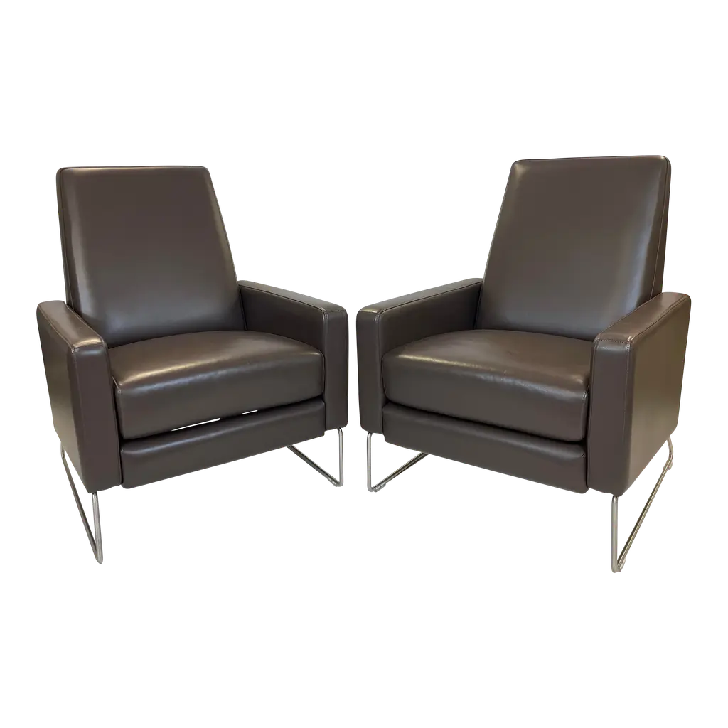 Offering up to two sets (4 chairs) of DWR Flight Recliners in sumptuous Chocloate Brown leather. Purchased 13 years ago. Used in a home theater. All function properly. Can be purchased as a set of two or all four.