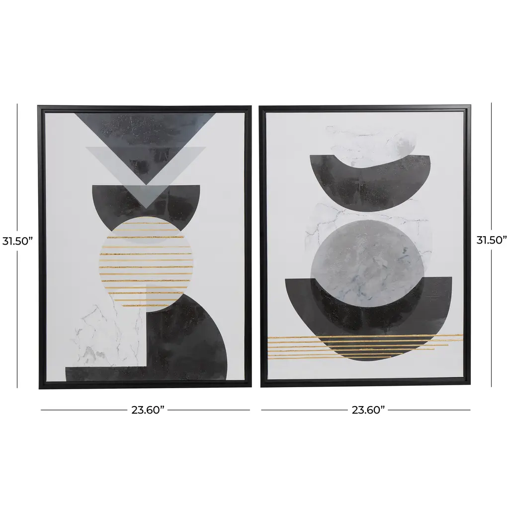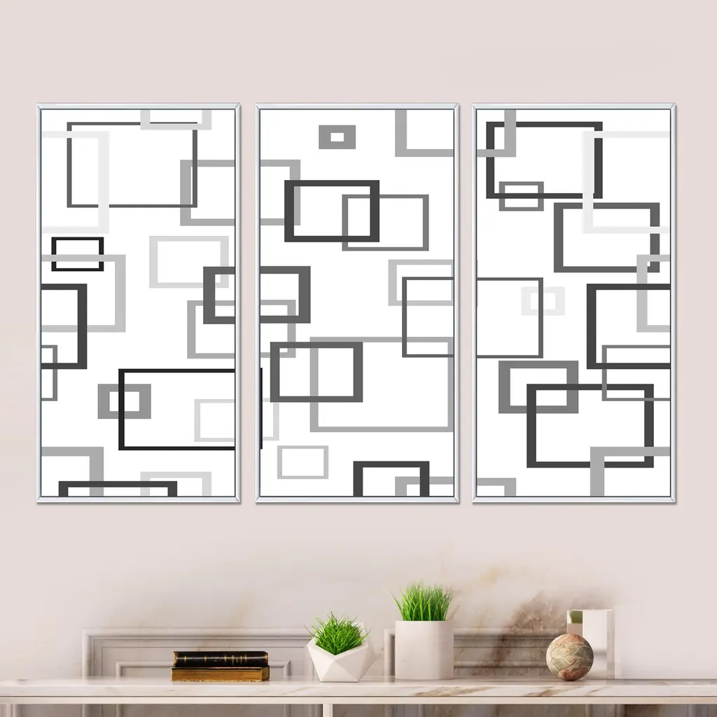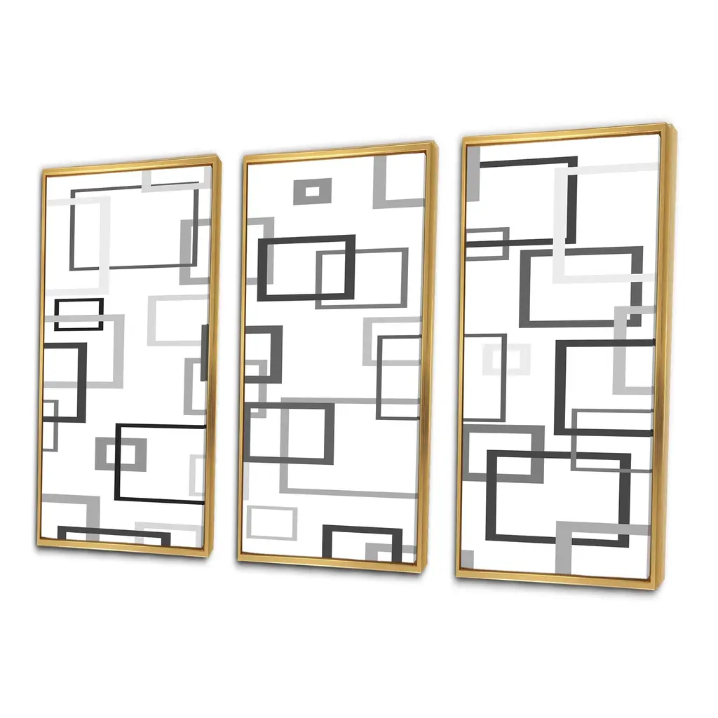 This beautiful Abstract Retro Design II 3 Panels Framed Canvas Art is printed using the highest quality fade-resistant ink on canvas. Every one of our fine art giclee canvas prints is printed on premium quality canvas, using the finest quality inks which will not fade over time. Each giclee print is stretched tightly over a 1-inch wood sub frame ensuring the canvas is taught and does not buckle. The canvas print is inserted into a wood floating frame. All of our Framed canvas prints are carefully packaged with corner protection, fragile labeling and sturdy boxes to ensure safe delivery. Every framed canvas print arrives ready to hang on the wall, with the hanging kits included. This framed art print is available in many different color frames. Features: - Style : Mid-Century Modern - Subject : Abstract, - Color : Grey - Premium quality cotton canvas. - Arrives ready to hang on the wall - Easy to Hang