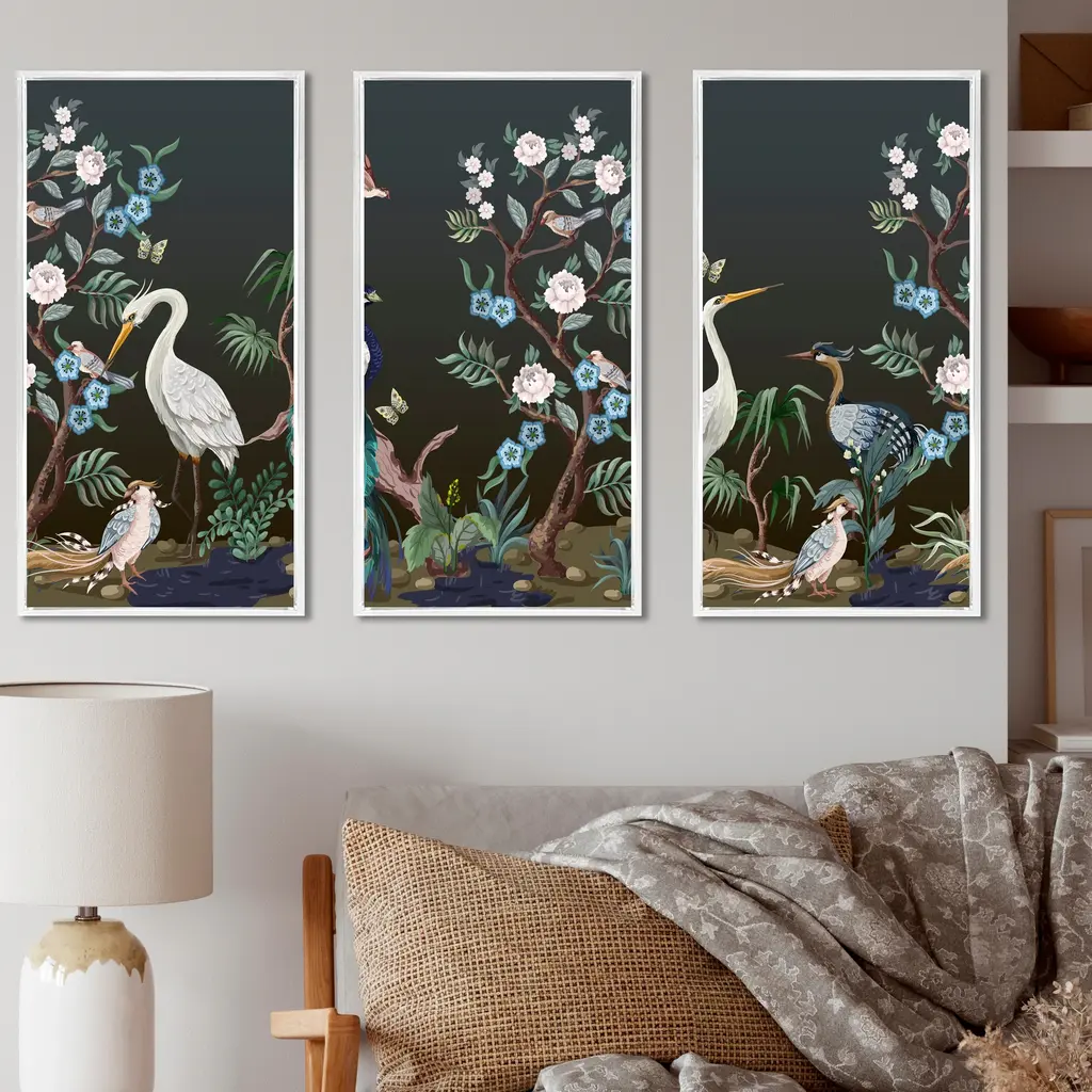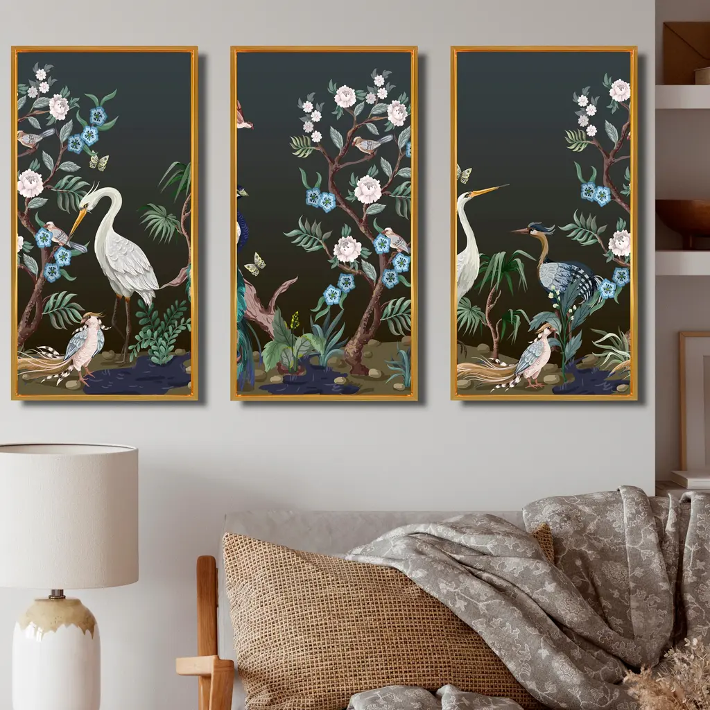 This beautiful Chinoiserie With Birds and Peonies IV 3 Panels Framed Canvas Art is printed using the highest quality fade-resistant ink on canvas. Every one of our fine art giclee canvas prints is printed on premium quality canvas, using the finest quality inks which will not fade over time. Each giclee print is stretched tightly over a 1-inch wood sub frame ensuring the canvas is taught and does not buckle. The canvas print is inserted into a wood floating frame. All of our Framed canvas prints are carefully packaged with corner protection, fragile labeling and sturdy boxes to ensure safe delivery. Every framed canvas print arrives ready to hang on the wall, with the hanging kits included. This framed art print is available in many different color frames. Features: - Style : Traditional - Subject : Animals, Cottage - Color : Black - Premium quality cotton canvas. - Arrives ready to hang on the wall - Easy to Hang