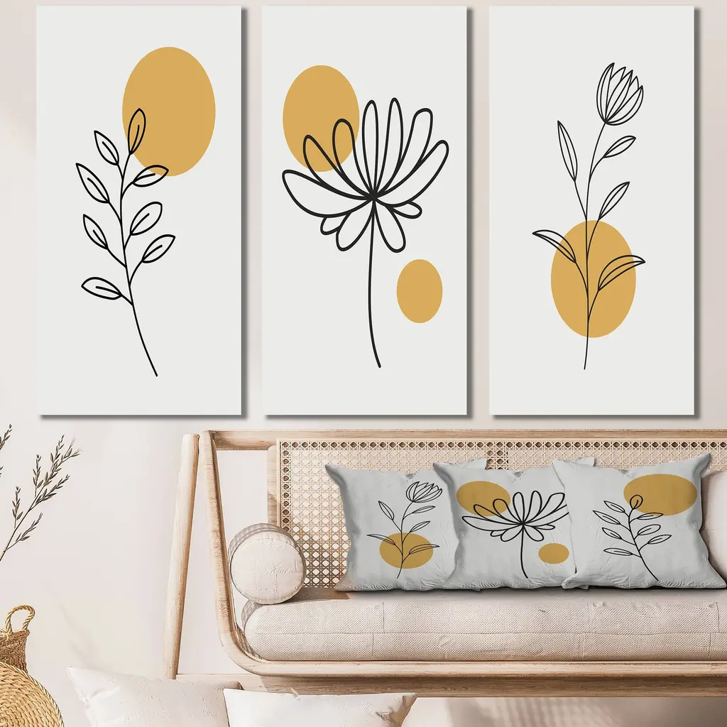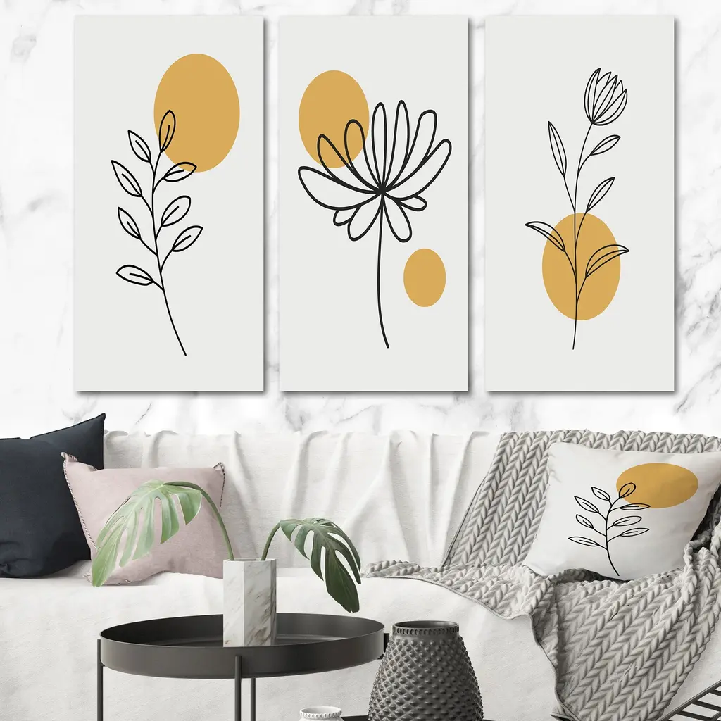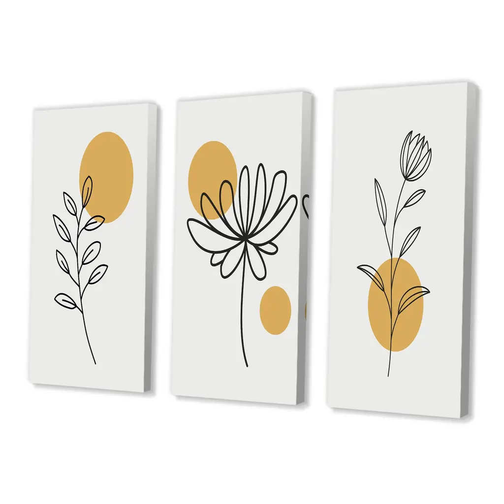This Abstract Collage is a Collection of 3 Canvas Art printed using the highest quality fade resistant ink on canvas. Every one of our fine art giclee canvas prints is printed on premium quality cotton canvas, using the finest quality inks which will not fade over time. Each giclee print is stretched tightly over a 1 inch wood sub frame ensuring the canvas is taught and does not buckle. This canvas art print is gallery-wrapped (the design continues on the sides) , giving it a real art gallery feel. All of our canvas prints are carefully packaged with plastic protection, fragile labeling and sturdy boxes to ensure a safe delivery. Every canvas print arrives ready to hang on the wall, with the hanging kits included. - Set Include: 3 Pieces of 12"x20", 12"x28", 16"x32", 20"x40", 30"x40" - Overall Dimensions: 36"x20", 36"x28", 48"x32", 60"x40", 90"x40" - Style : Mid-Century Modern - Subject : Abstract - Color : Yellow; Black - This canvas giclee print is gallery-wrapped (the design continues on the sides) , giving it a real art gallery feel. - Premium quality cotton canvas. - Arrives ready to hang on the wall - Easy to Hang