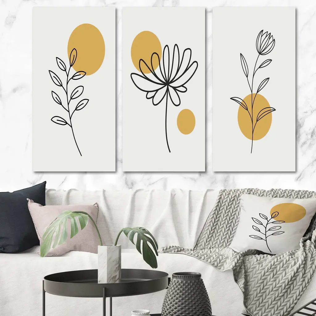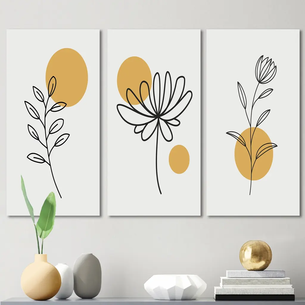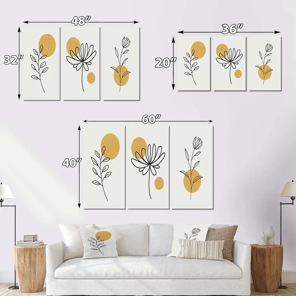 This Abstract Collage is a Collection of 3 Canvas Art printed using the highest quality fade resistant ink on canvas. Every one of our fine art giclee canvas prints is printed on premium quality cotton canvas, using the finest quality inks which will not fade over time. Each giclee print is stretched tightly over a 1 inch wood sub frame ensuring the canvas is taught and does not buckle. This canvas art print is gallery-wrapped (the design continues on the sides) , giving it a real art gallery feel. All of our canvas prints are carefully packaged with plastic protection, fragile labeling and sturdy boxes to ensure a safe delivery. Every canvas print arrives ready to hang on the wall, with the hanging kits included. - Set Include: 3 Pieces of 12"x20", 12"x28", 16"x32", 20"x40", 30"x40" - Overall Dimensions: 36"x20", 36"x28", 48"x32", 60"x40", 90"x40" - Style : Mid-Century Modern - Subject : Abstract - Color : Yellow; Black - This canvas giclee print is gallery-wrapped (the design continues on the sides) , giving it a real art gallery feel. - Premium quality cotton canvas. - Arrives ready to hang on the wall - Easy to Hang